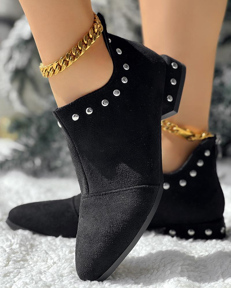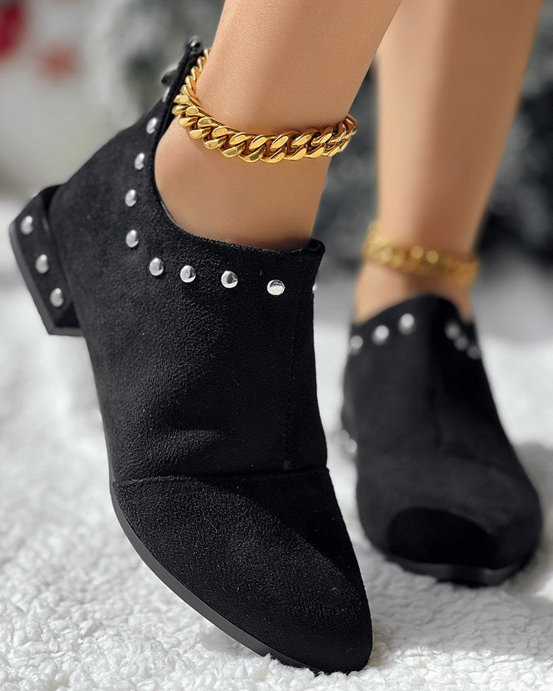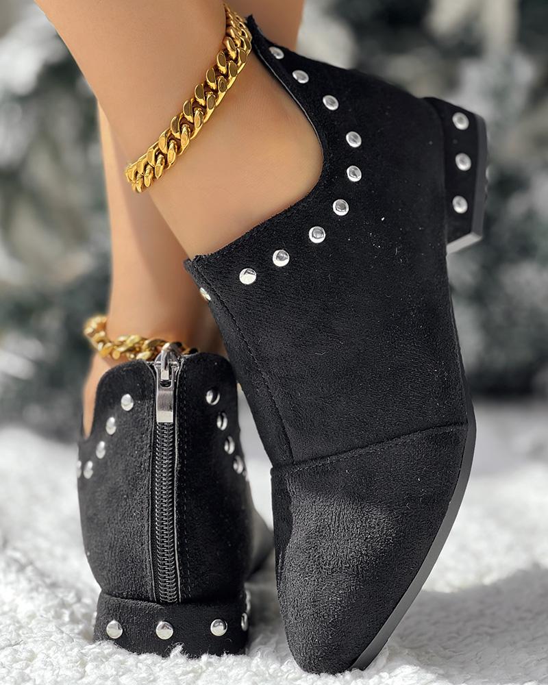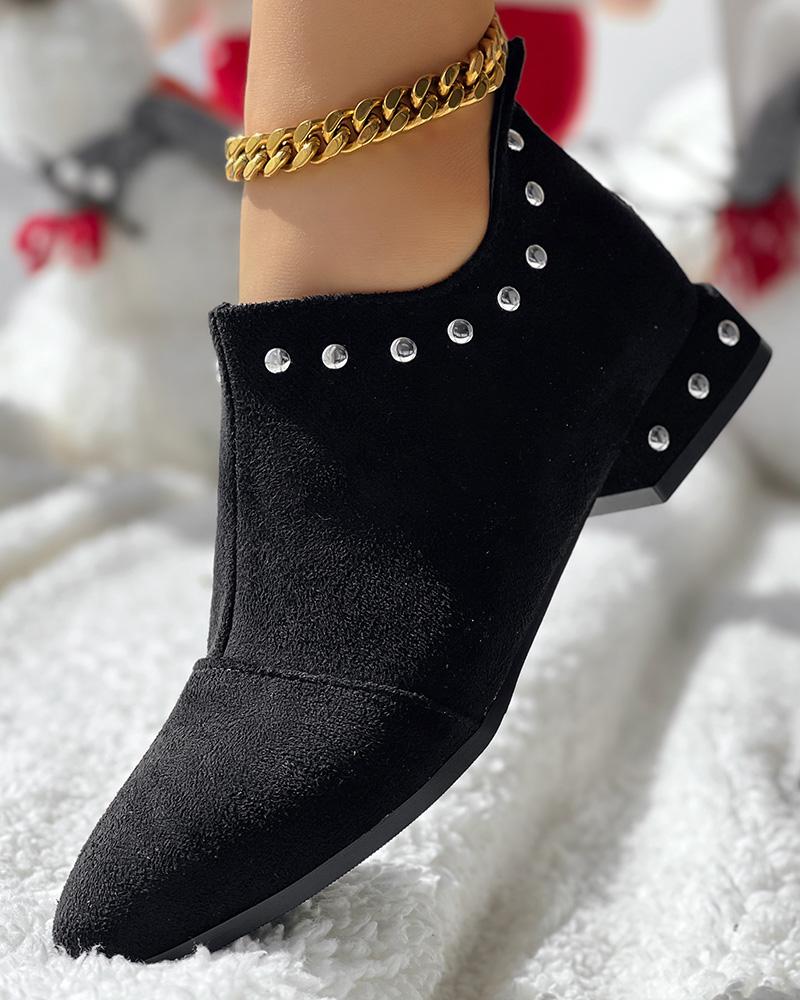 Studded Chunky Heel Ankle Boots