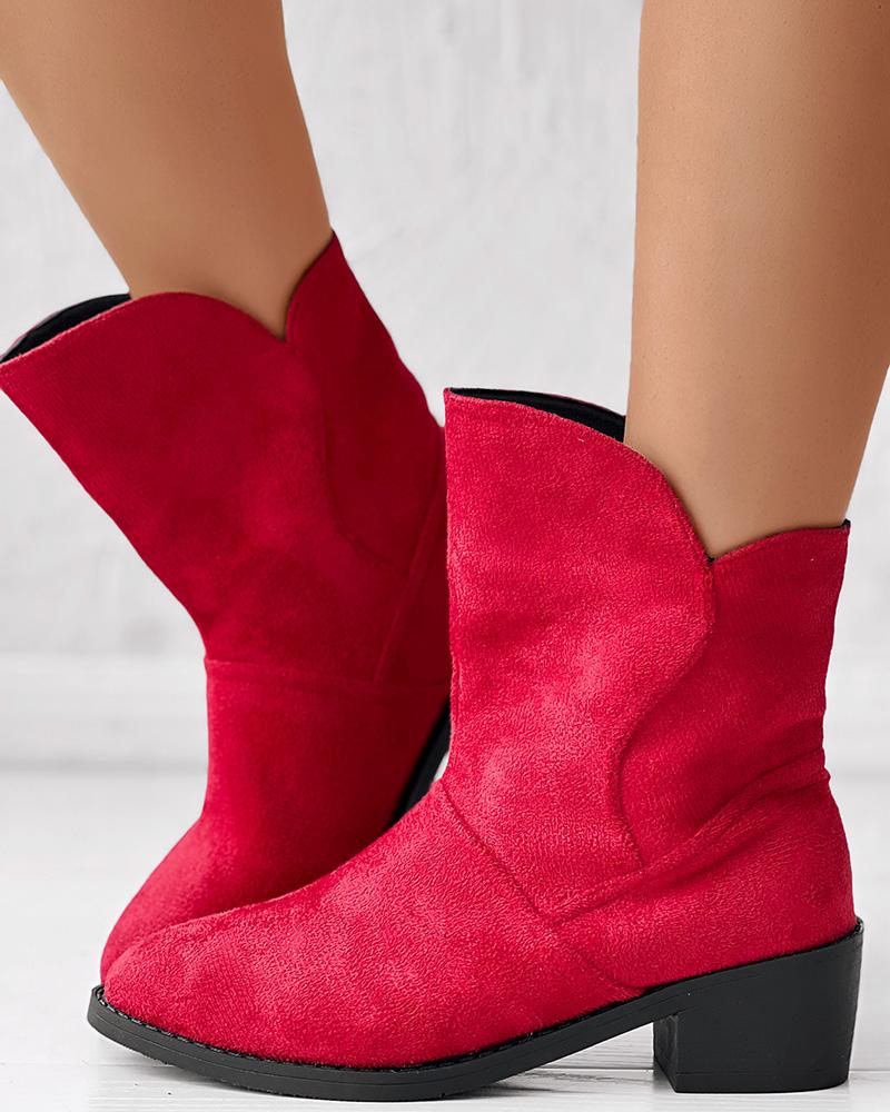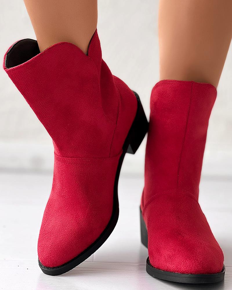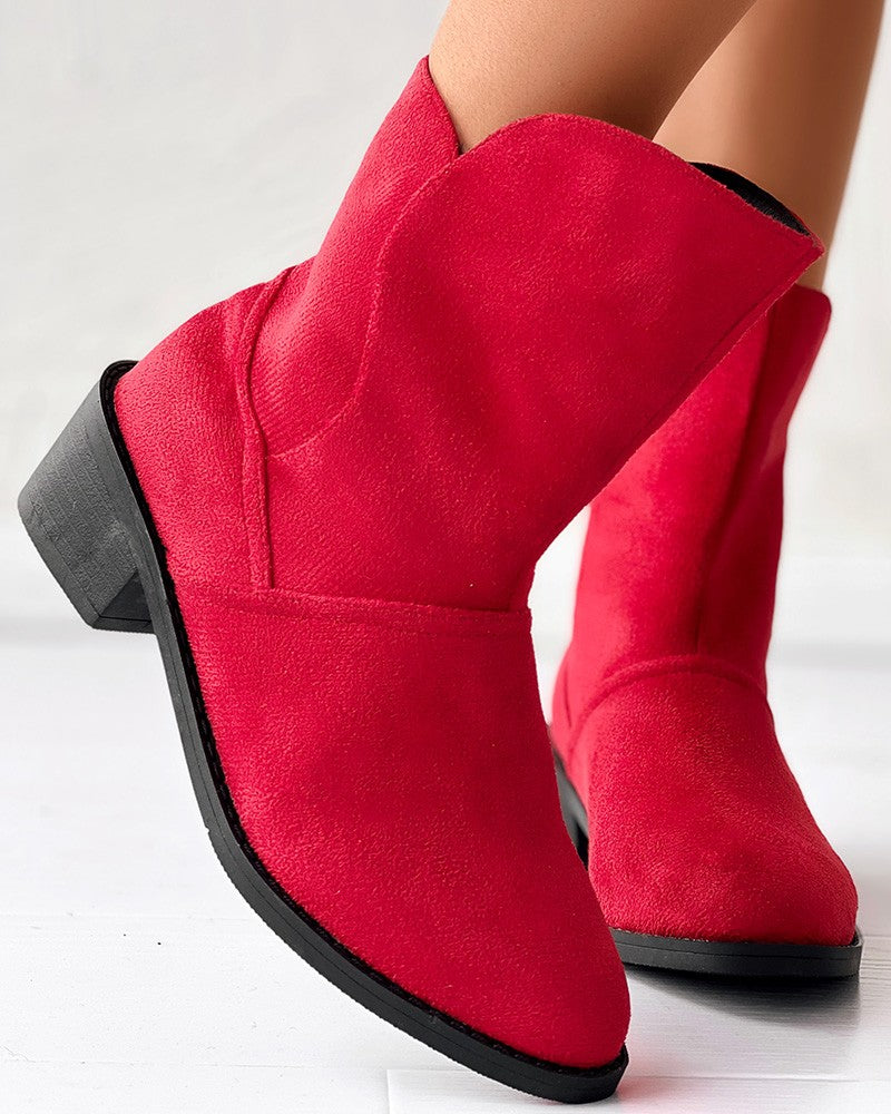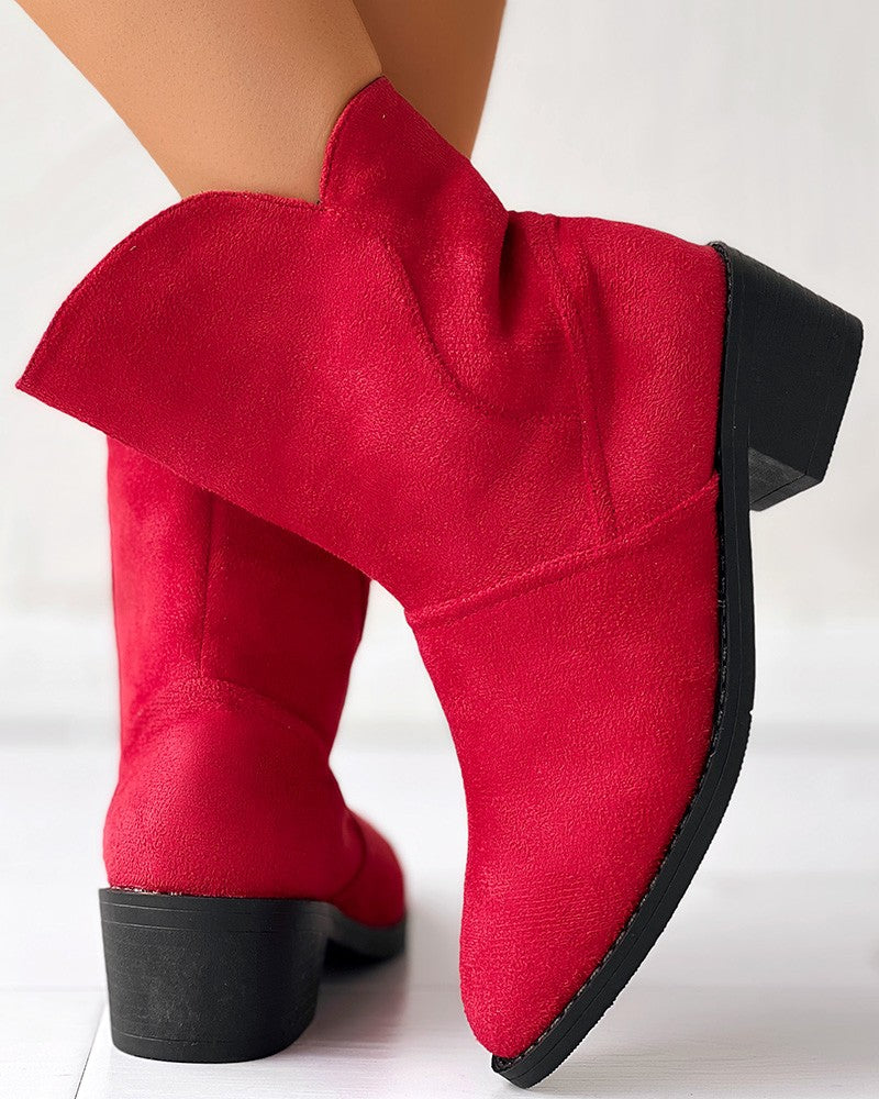Suede Point Toe Chunky Heel Knight Boots