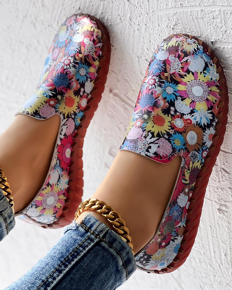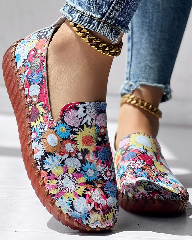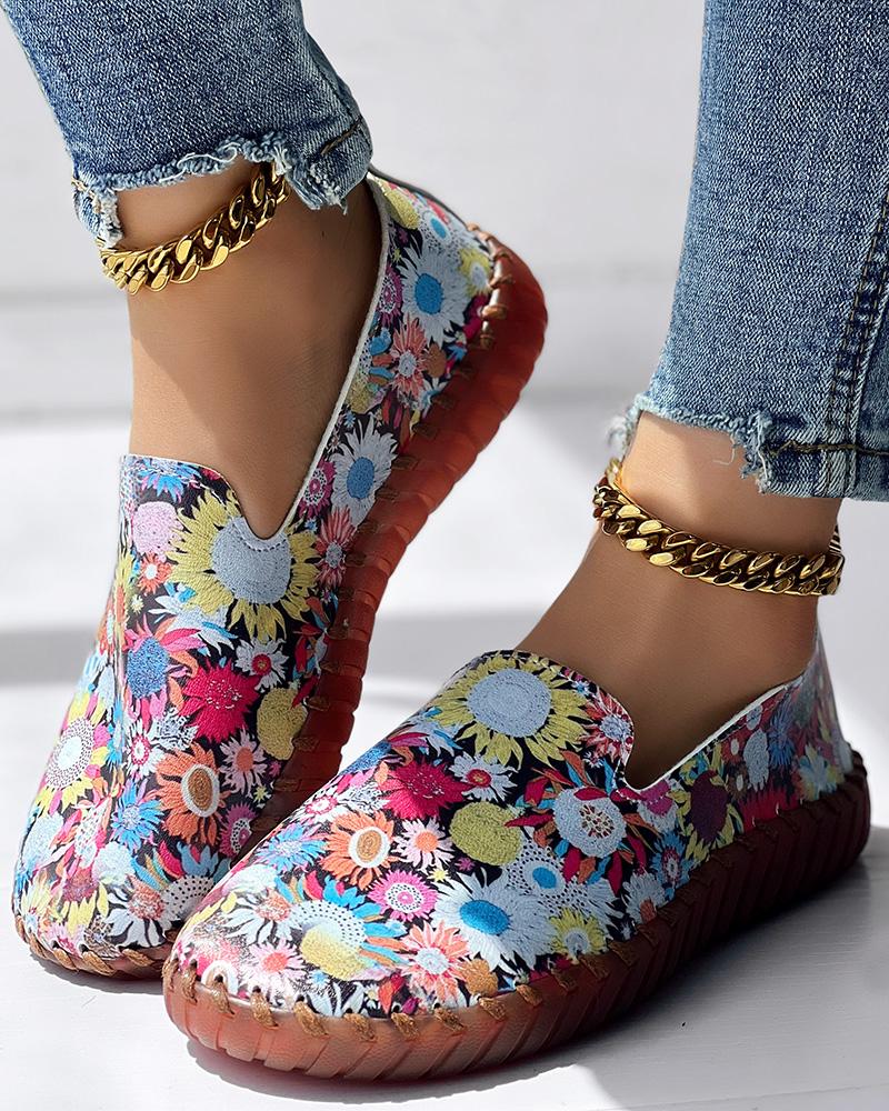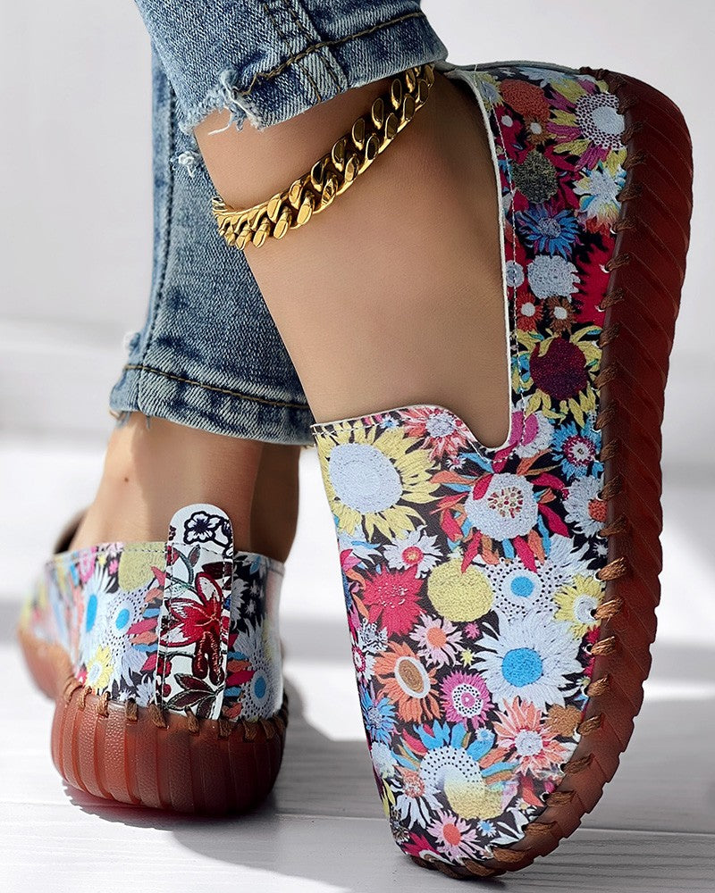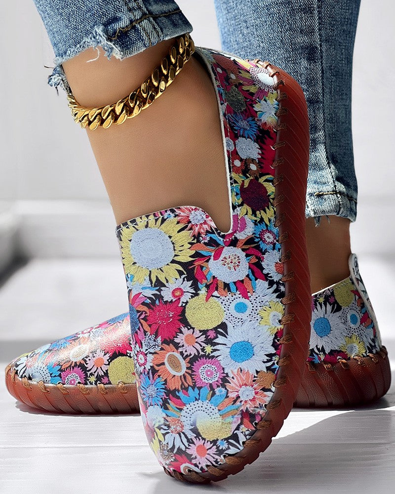 Sunflower Print Casual Slip On