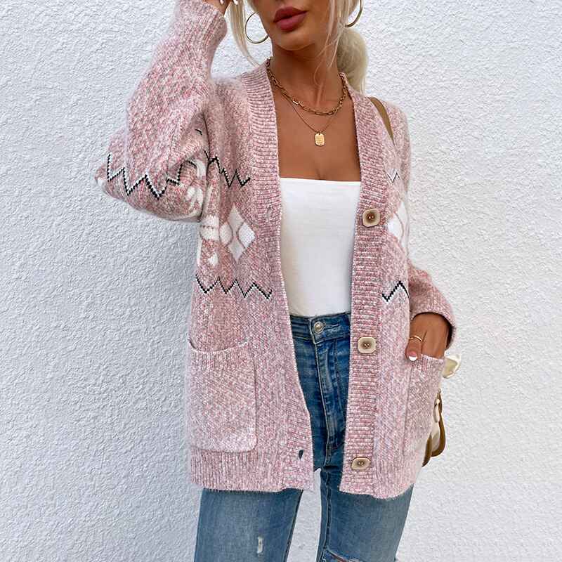 Women Fashion Open Front Long Sleeve Aztec Cardigans Sweaters Coats K223