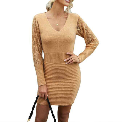 Women's Open Back Sheer Lace Long Sleeve Round Neck Bodycon Mini Dress K211