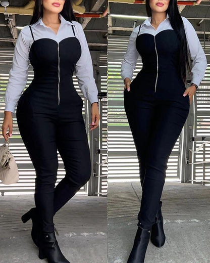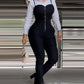 Sweatheart Neck Spaghetti Strap Zip Up Pocket Design Skinny Jumpsuit