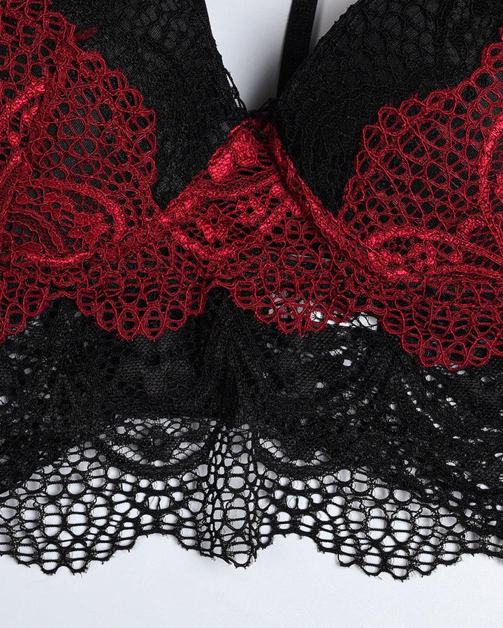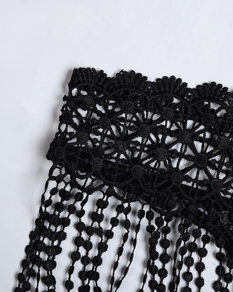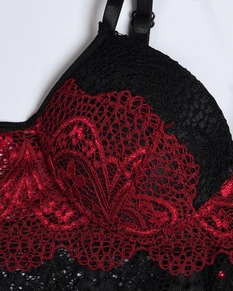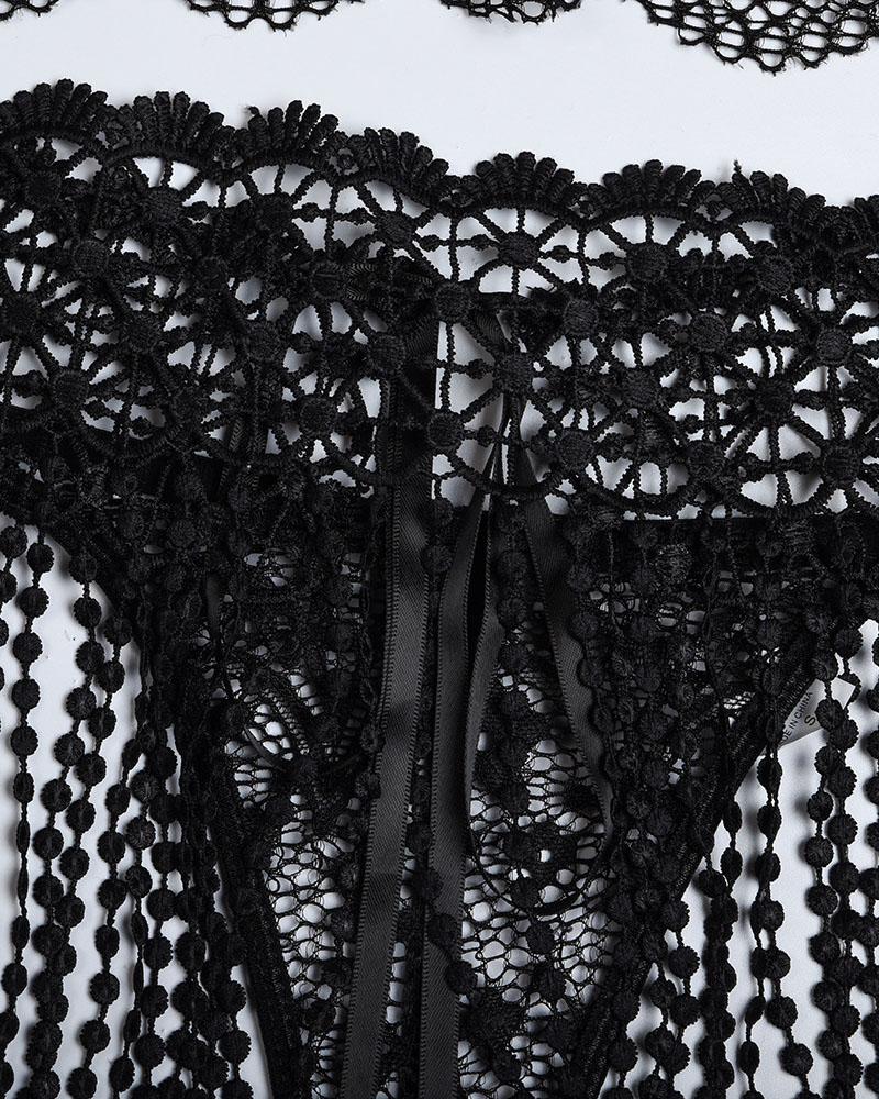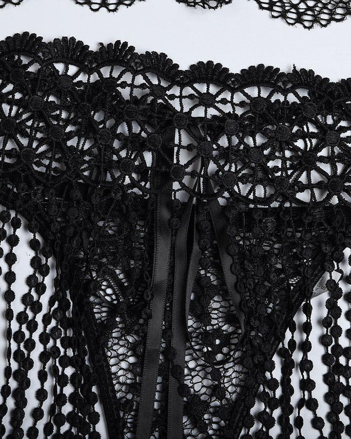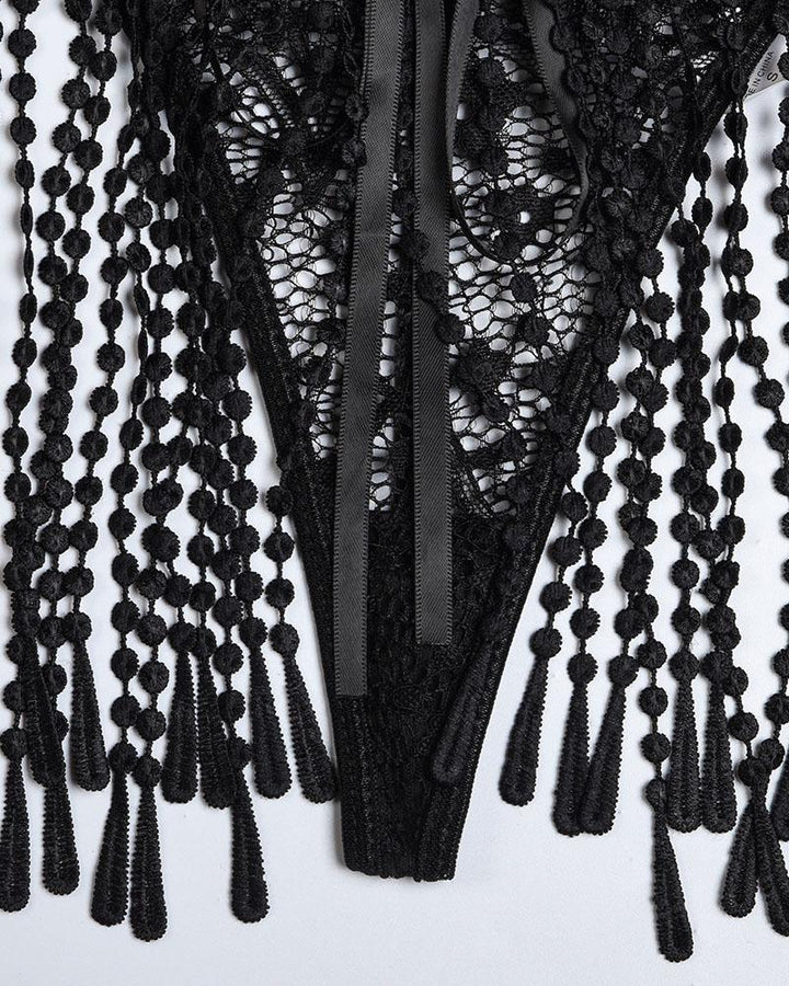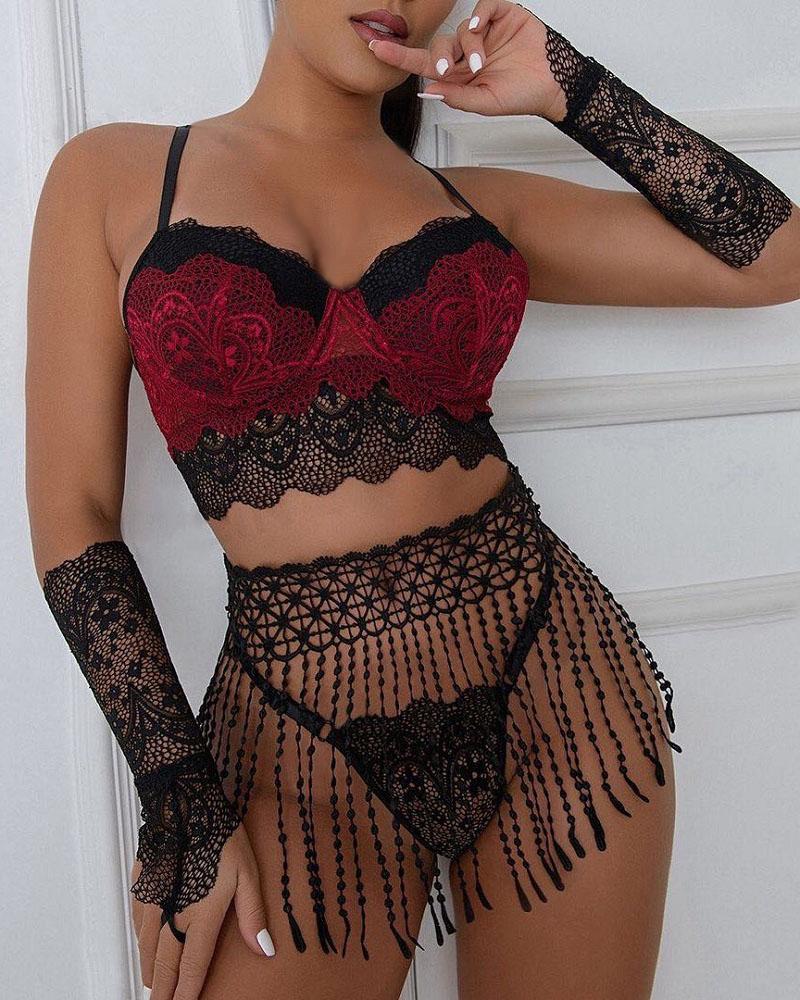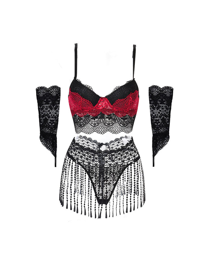 Tassel Decor Lace Christmas Lingerie Set With Gloves