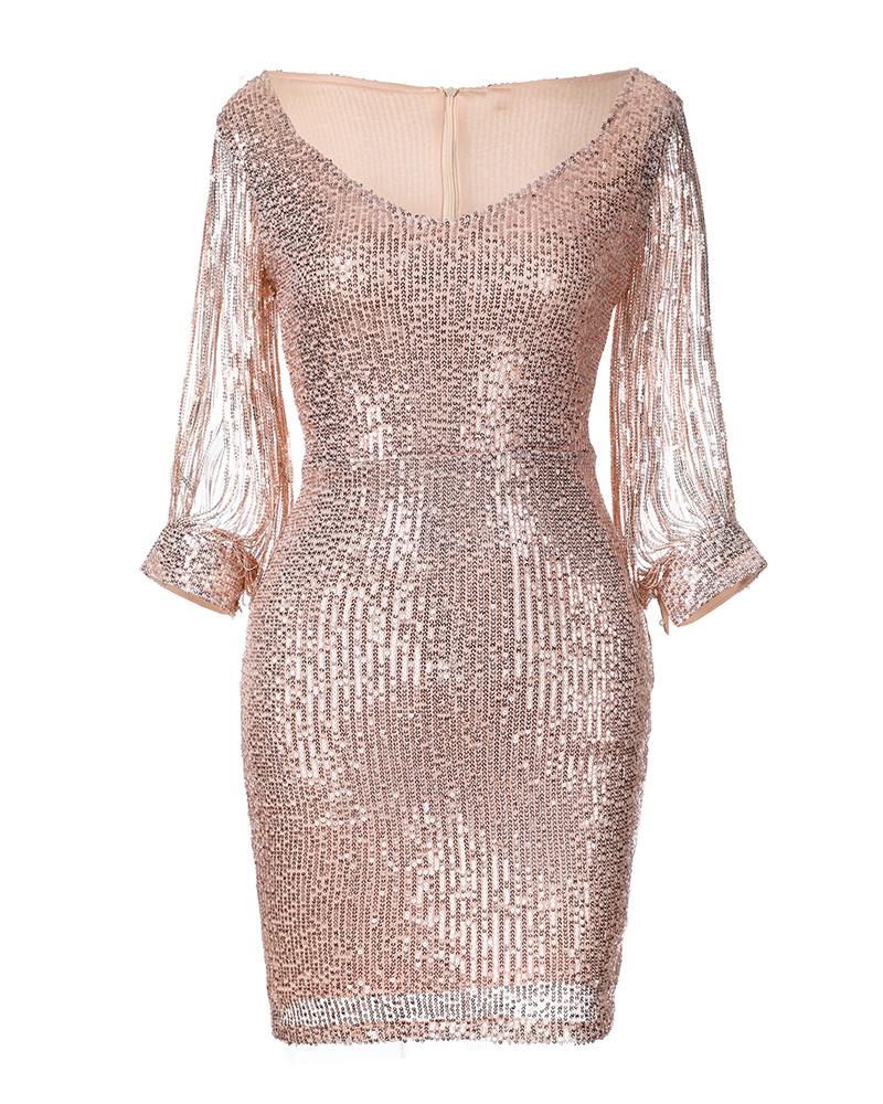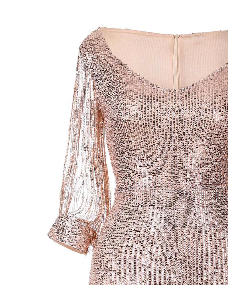 Tassels Detail Slit Half Sleeve Sequin Party Dress