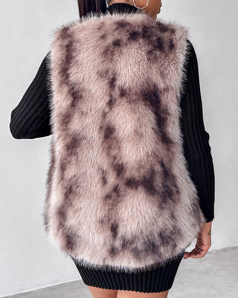 Tie Dye Pattern Open Front Fluffy Vest Coat