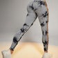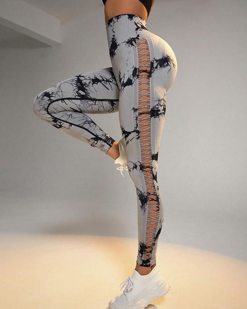 Tie Dye Print Ladder Cutout Sports Yoga Leggings