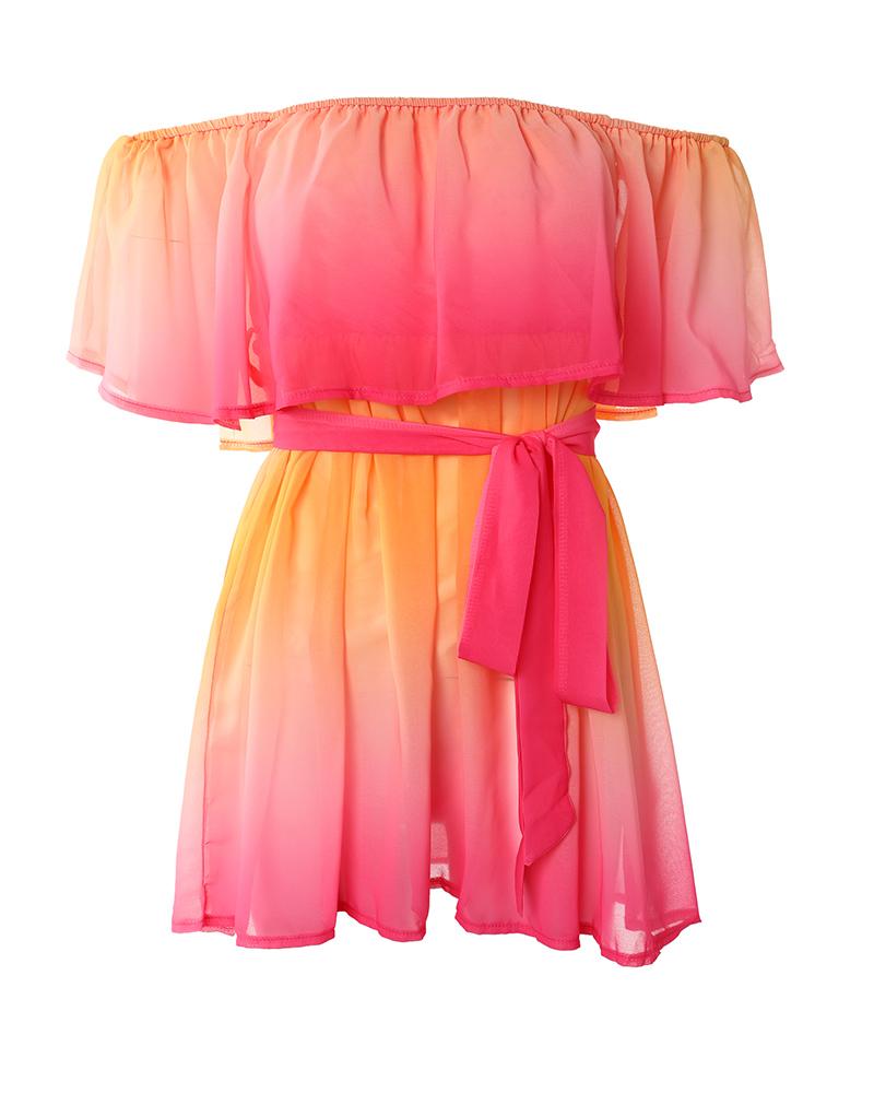 Tie Dye Print Off Shoulder Ruffle Hem Belted Dress