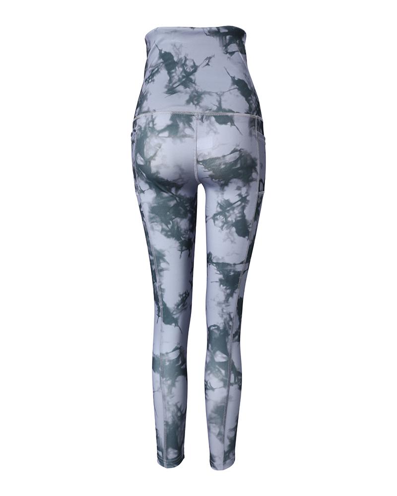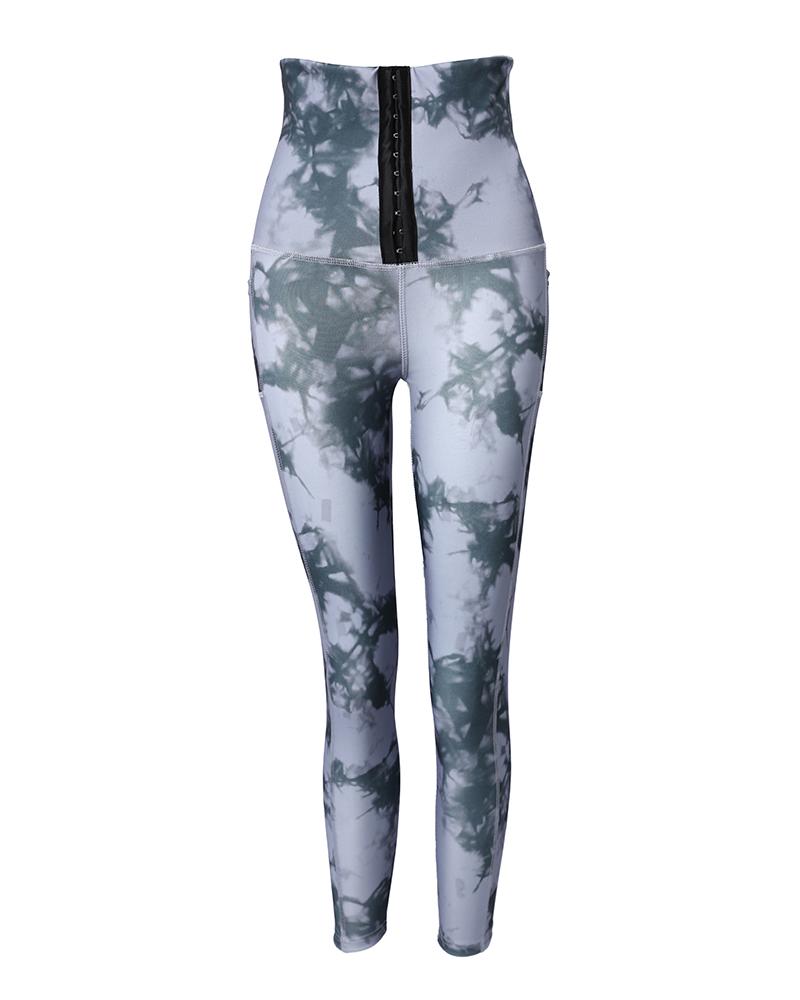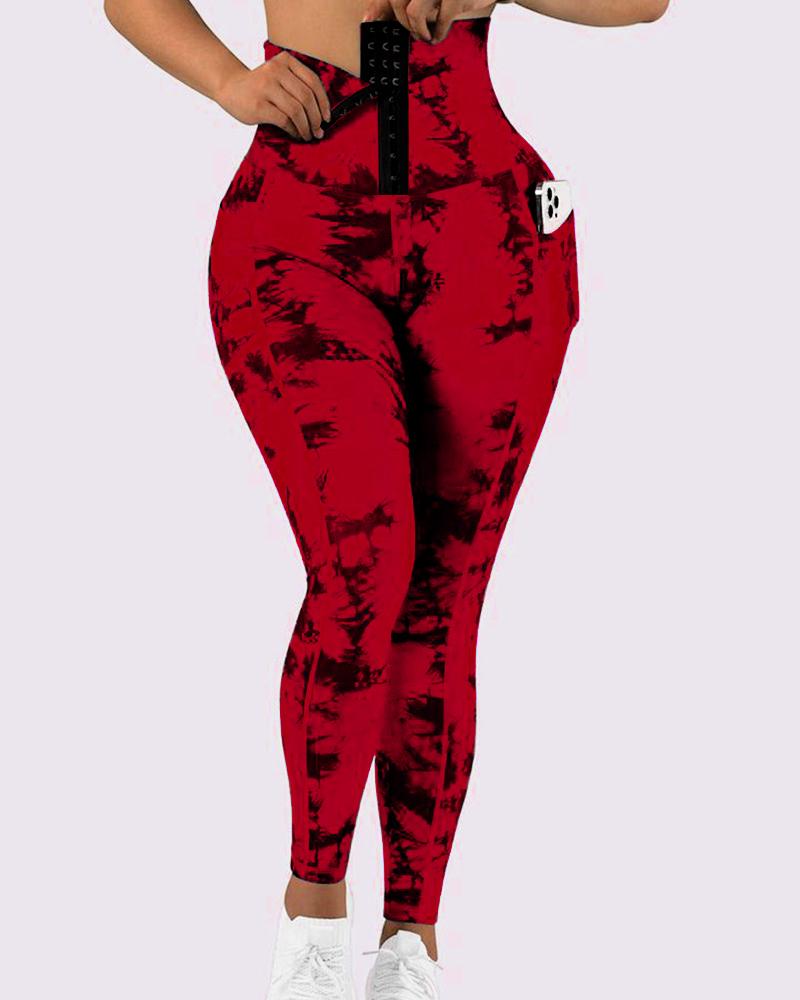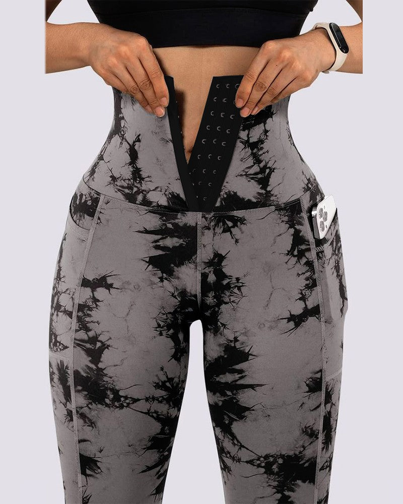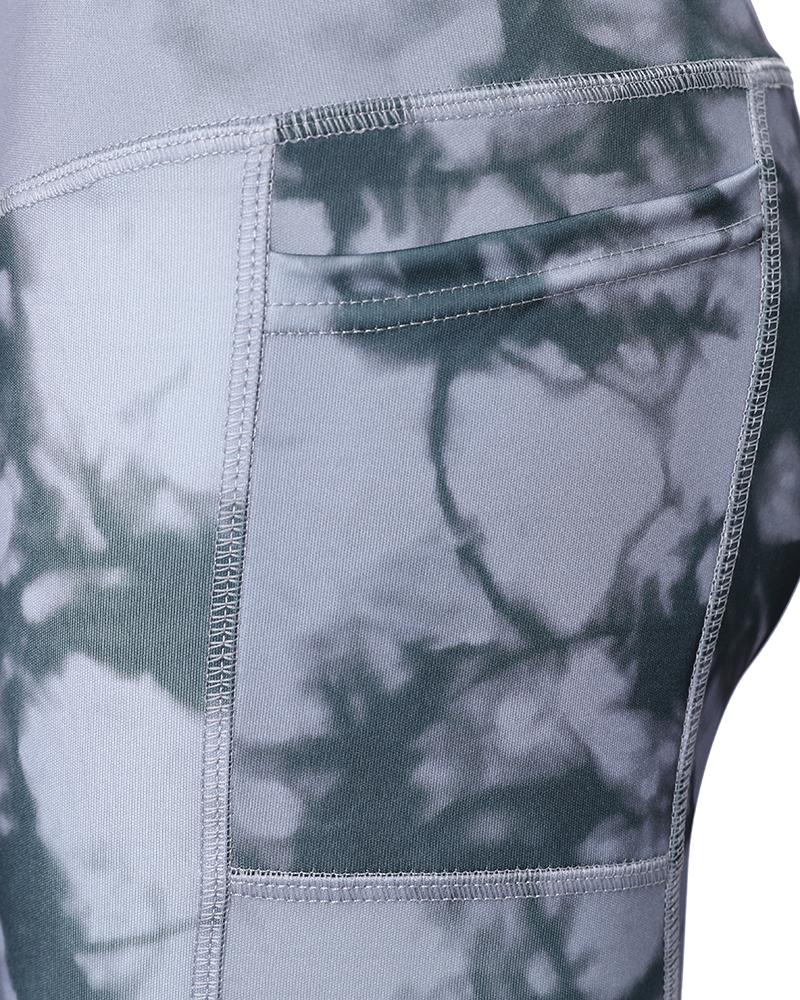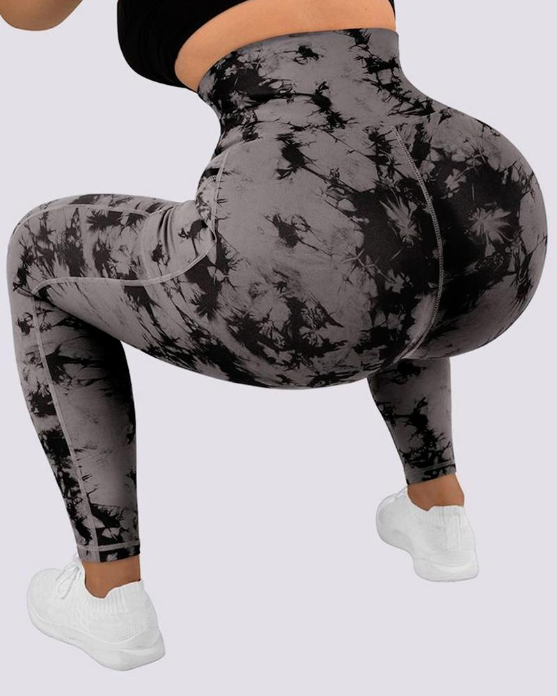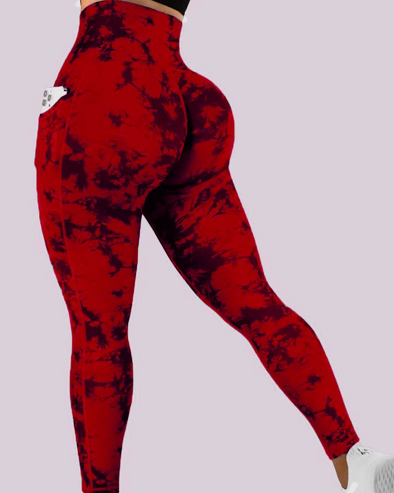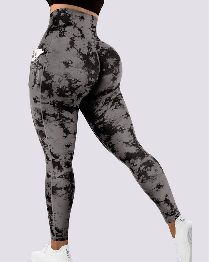 Tie Dye Print Tummy Control Butt Lifting Pocket Design Yoga Pants