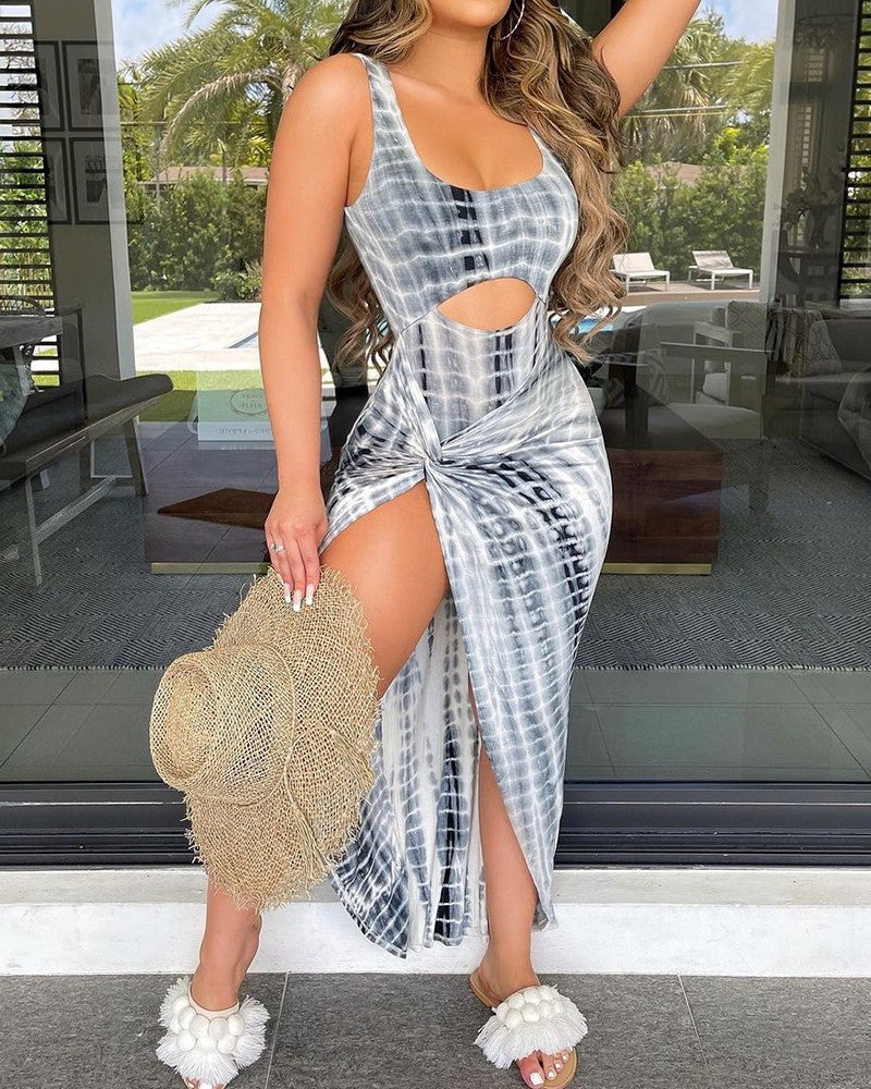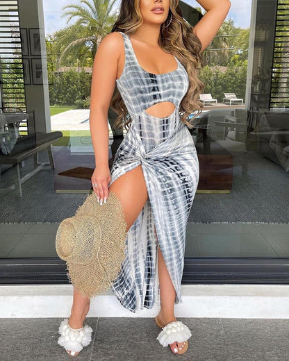 Tie Dye Sleeveless Cut out Midi Sit Dress