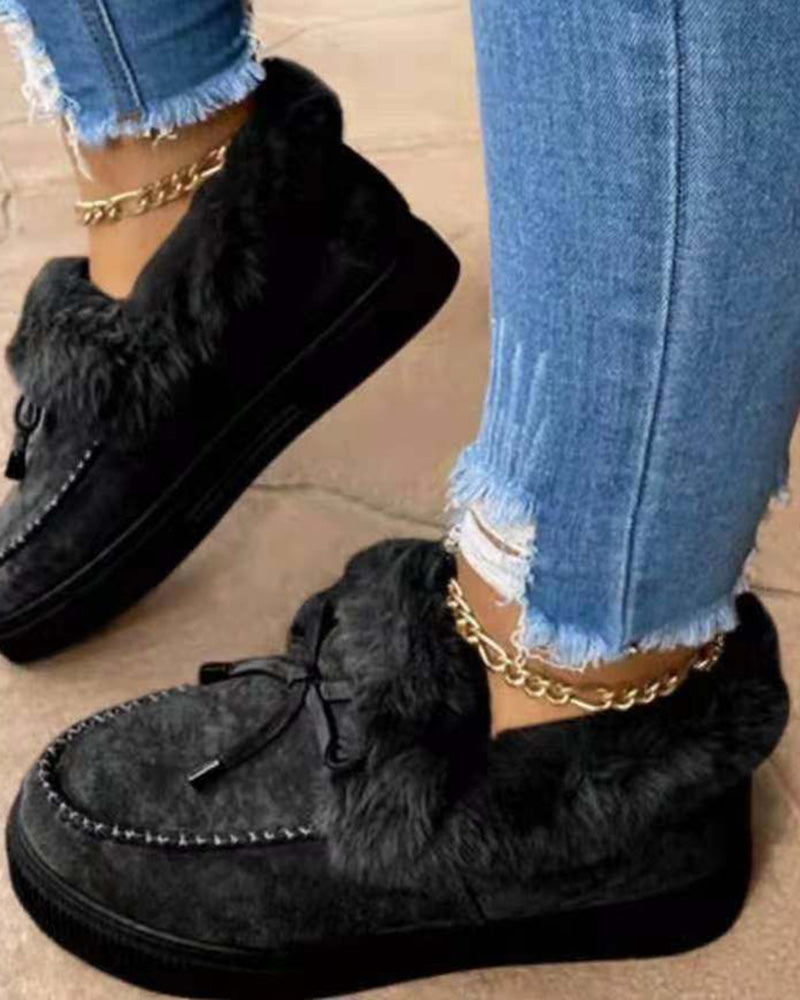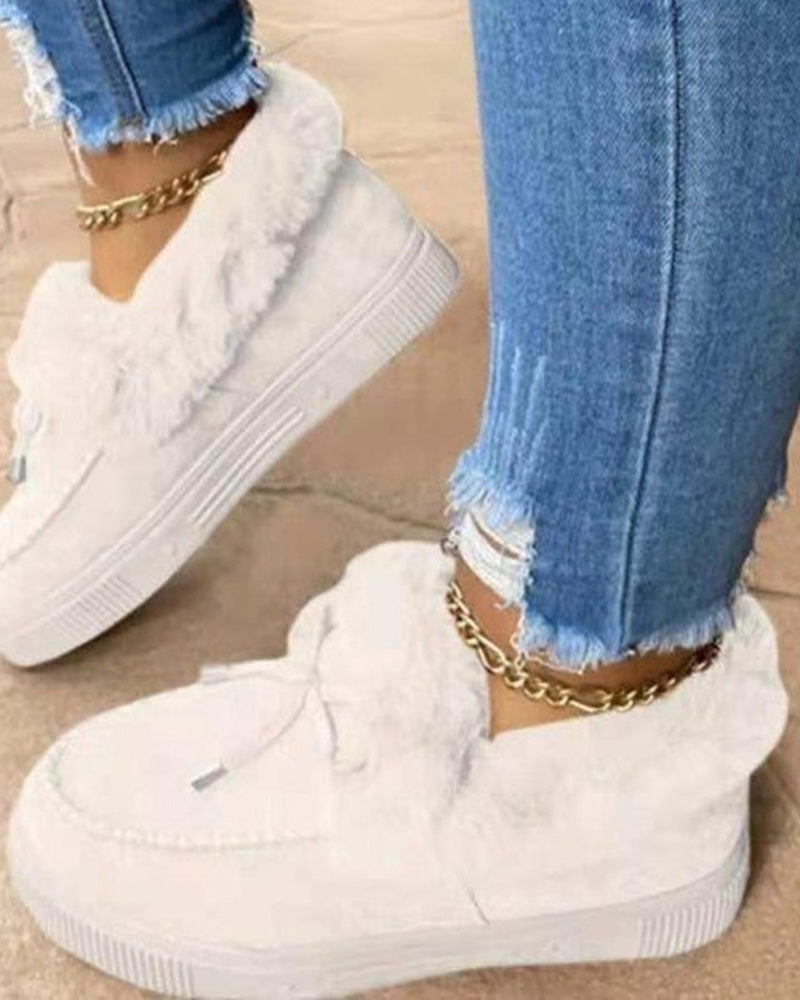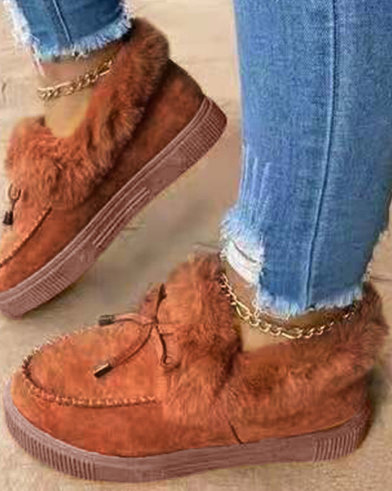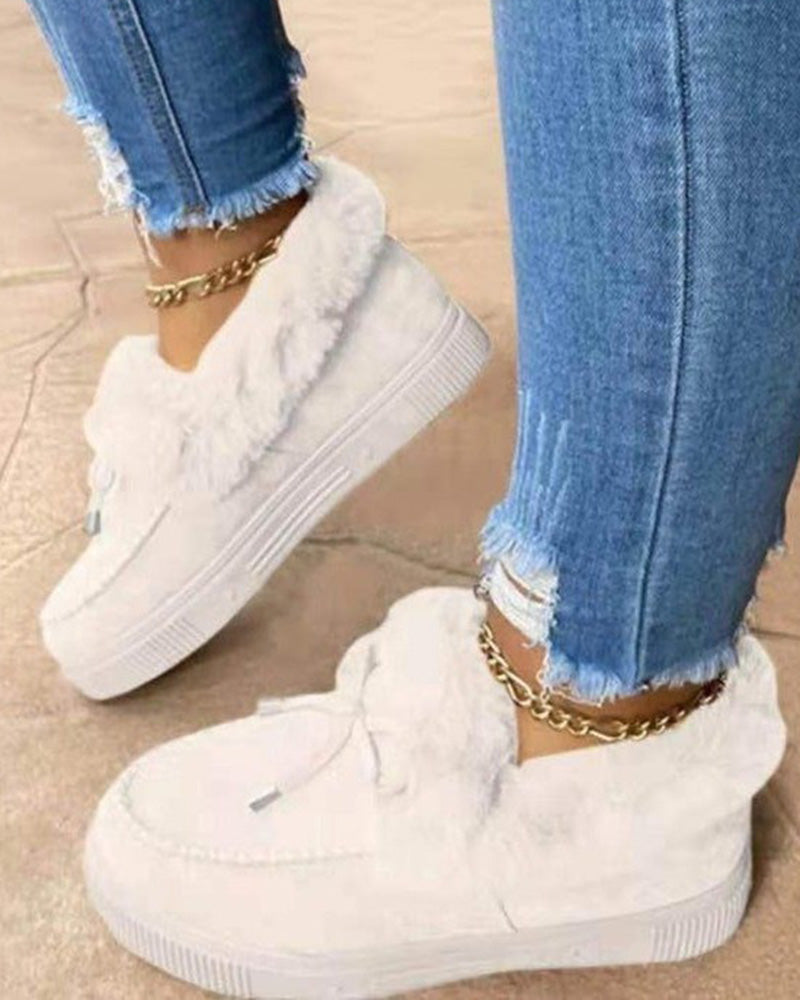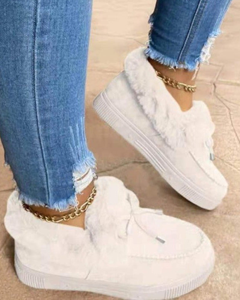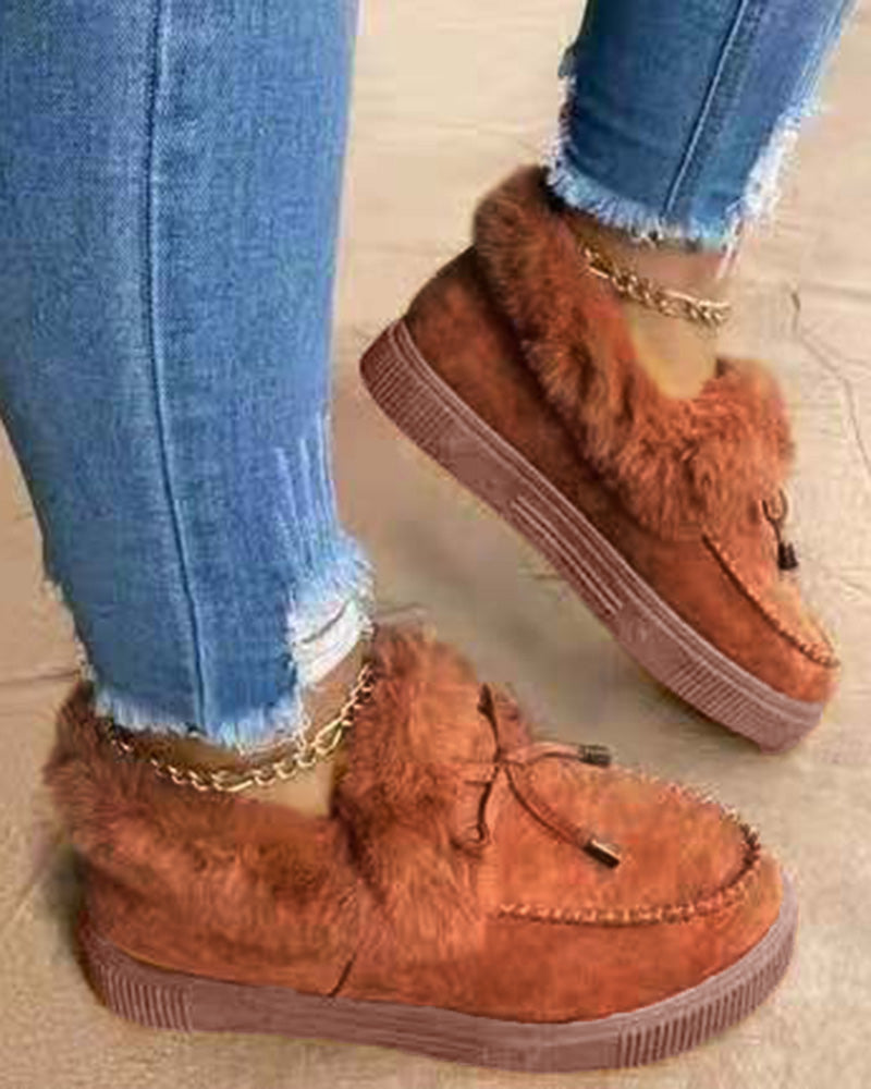 Tied Detail Fuzzy Trim Lined Snow Boots