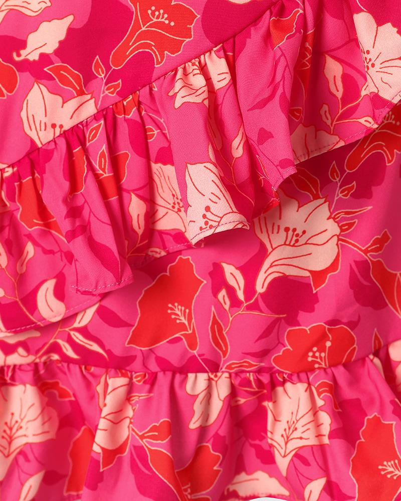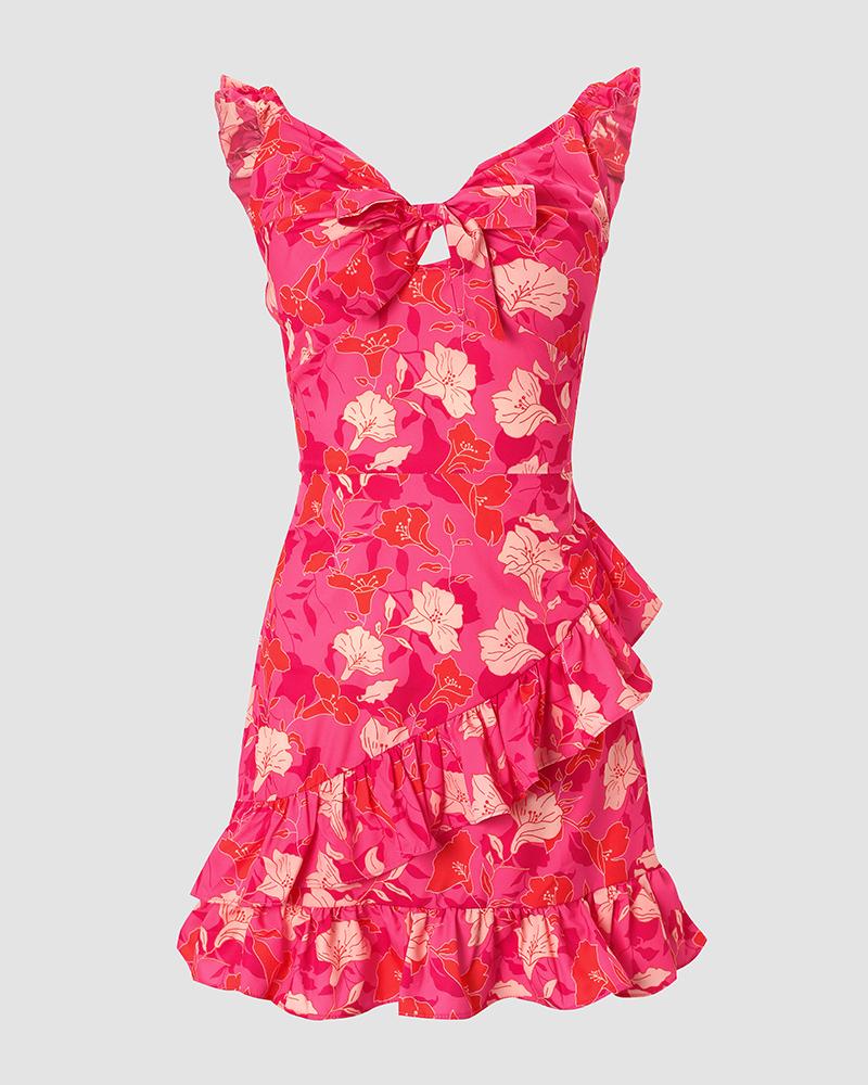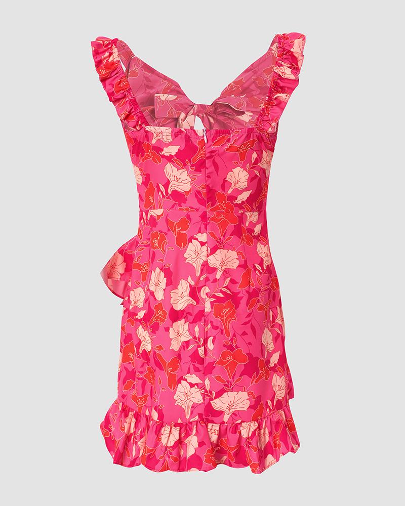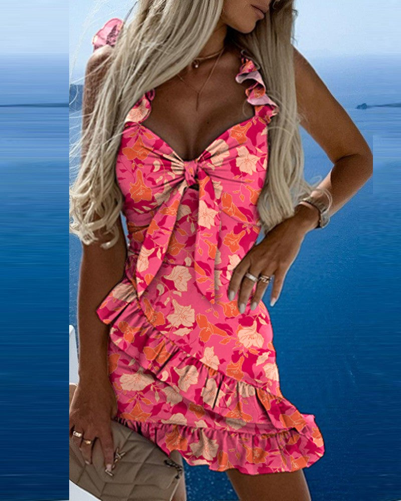 Tied Detail Ruffle Hem Floral Print Dress
