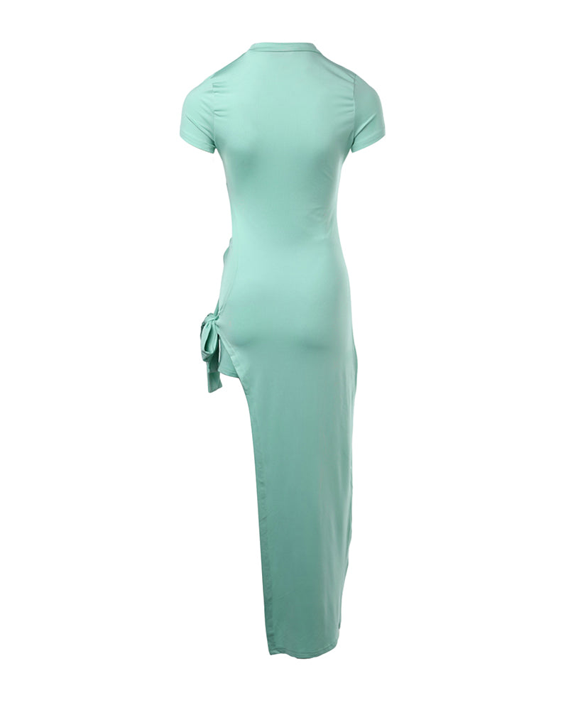 Tied Detail Slit Asymmetrical Top & Shorts Set