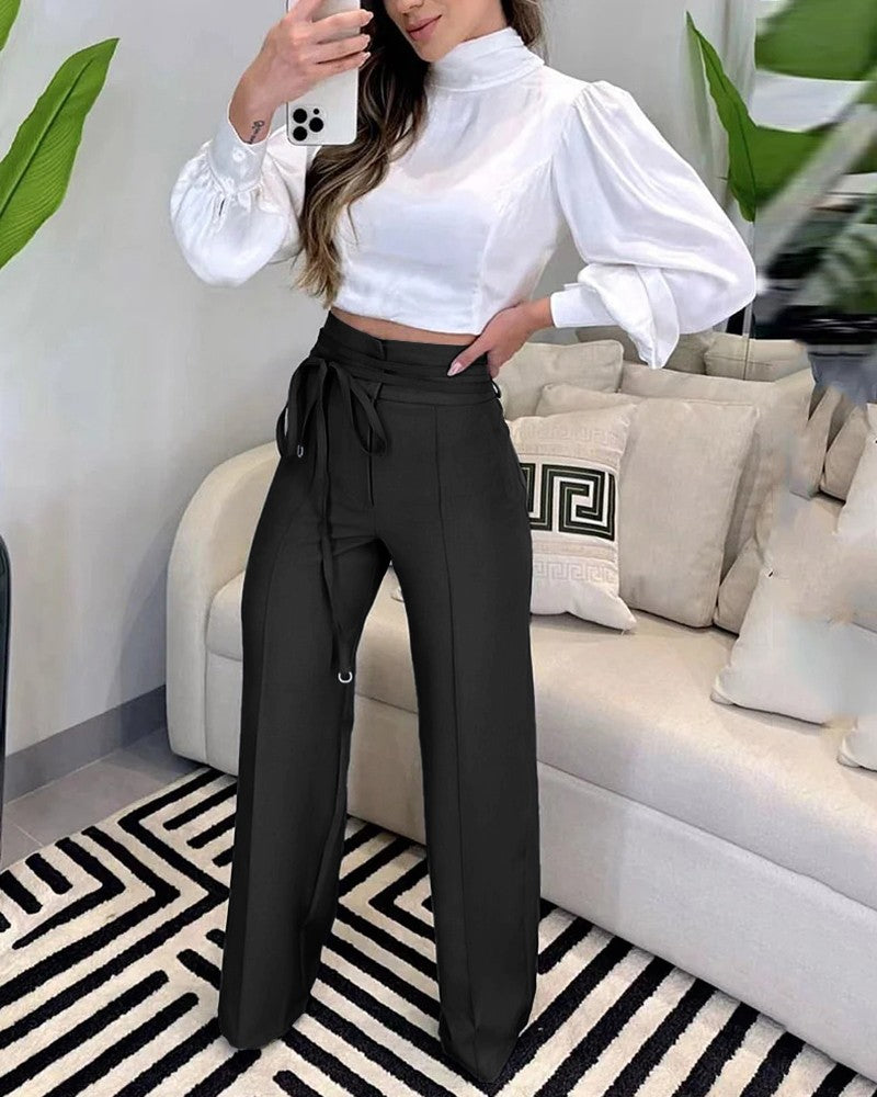 Tied Detail Straight Leg Work Pants