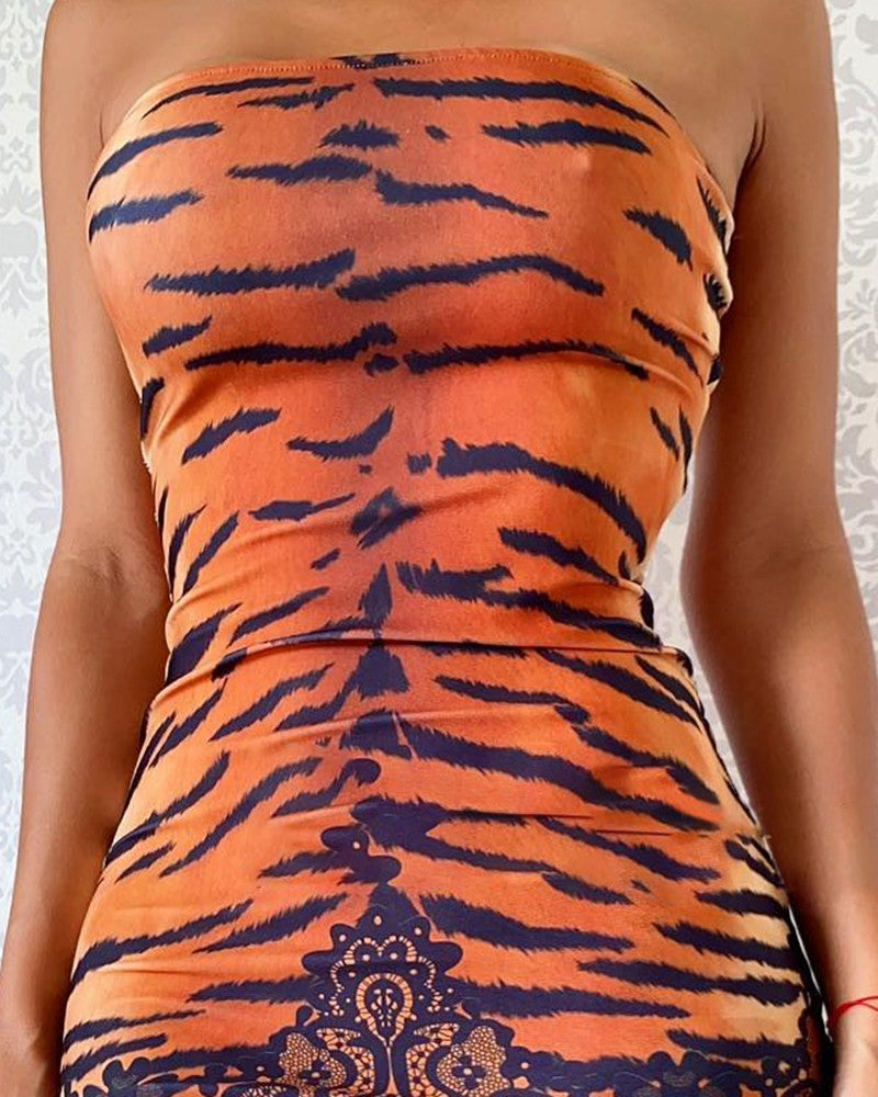 Tiger Lace Print Bandeau Bodycon Dress