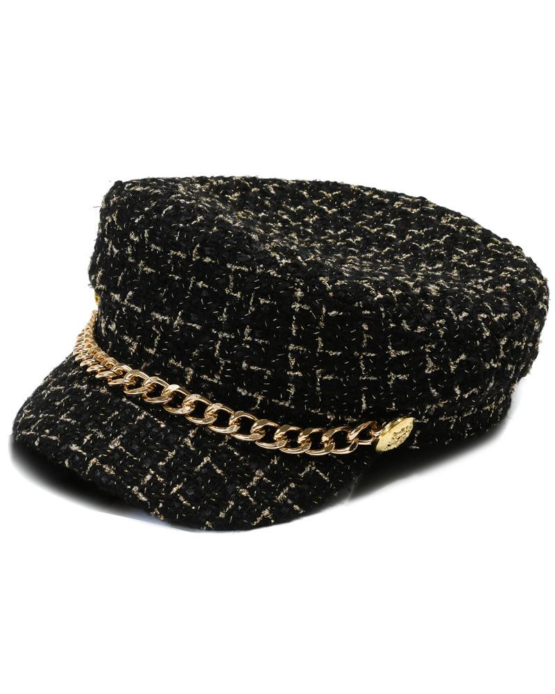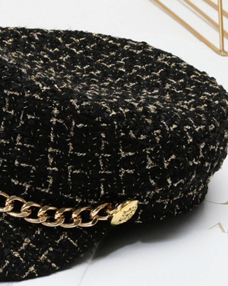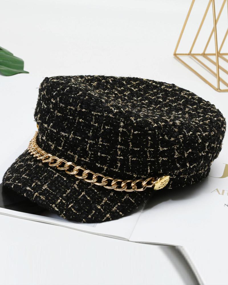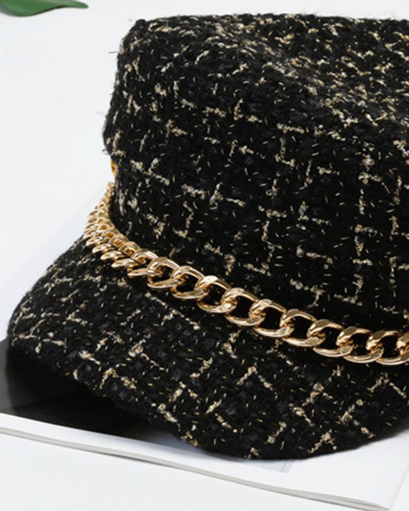 Trendy Tweed Chain Decor Peaked Cap