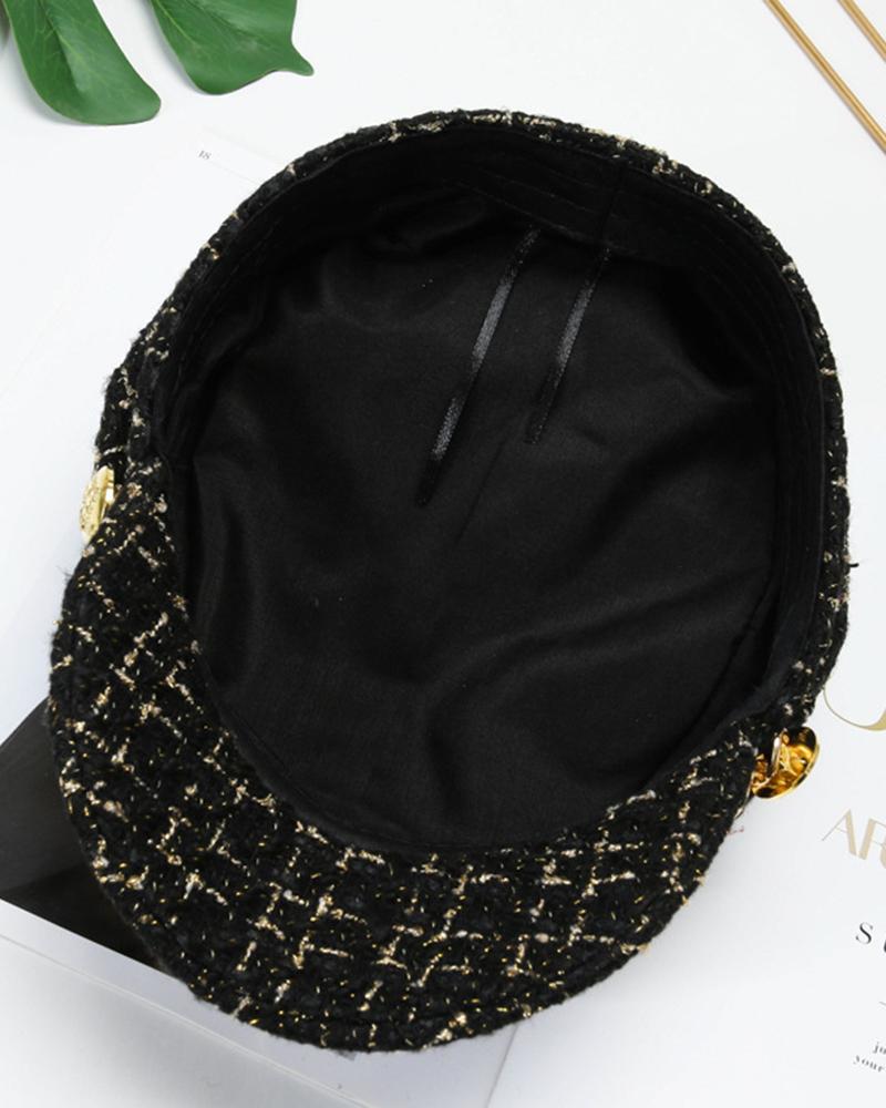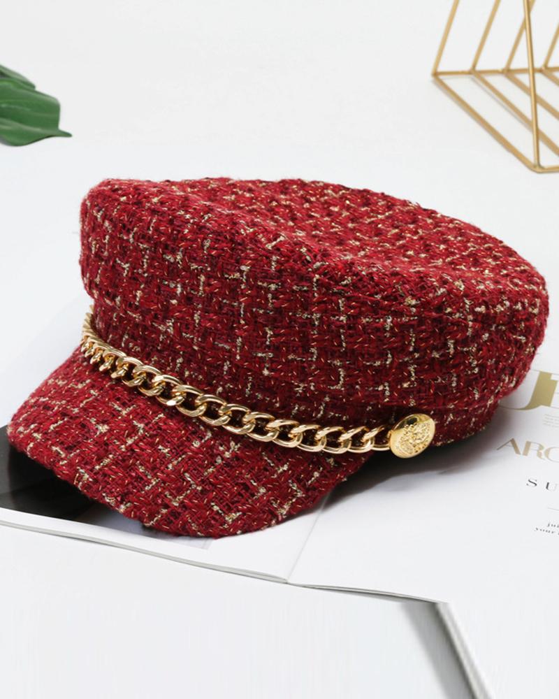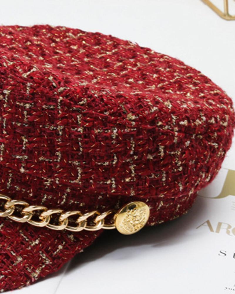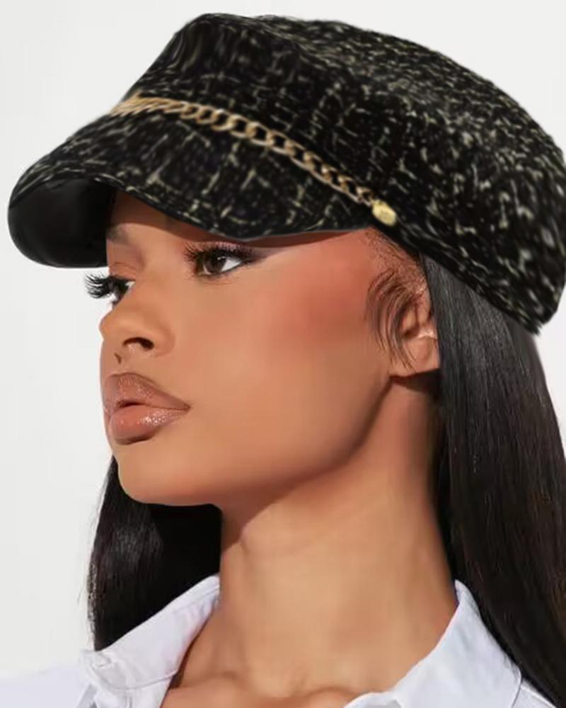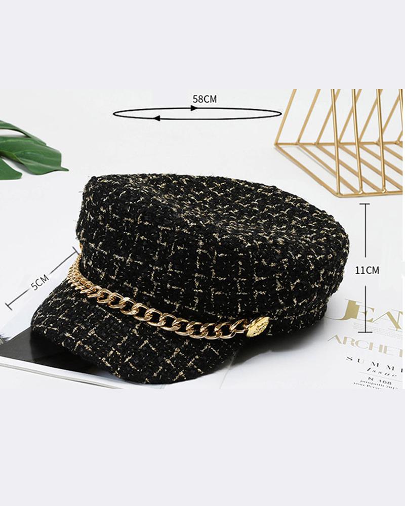 Trendy Tweed Chain Decor Peaked Cap