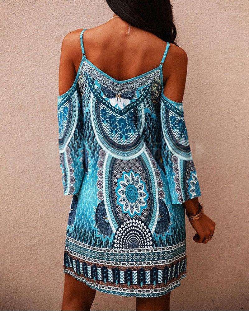 Tribal Print Cold Shoulder Casual Dress