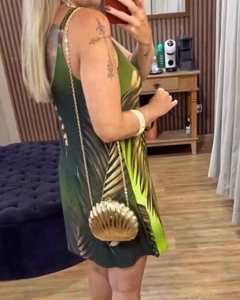 Tribal Print Plunge V Neck Spaghetti Strap Dress Casual Slim Fit Mini Dress