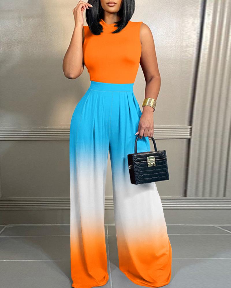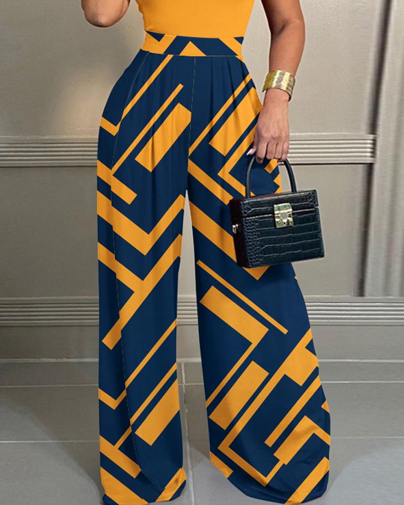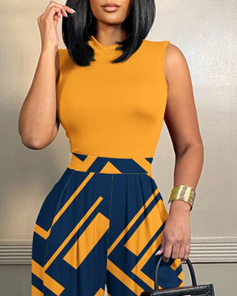 Tribal Print Sleeveless Wide Leg Jumpsuit