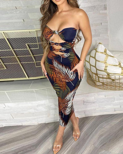Tropical Print Knotted Cutout Bodycon Tube Dress