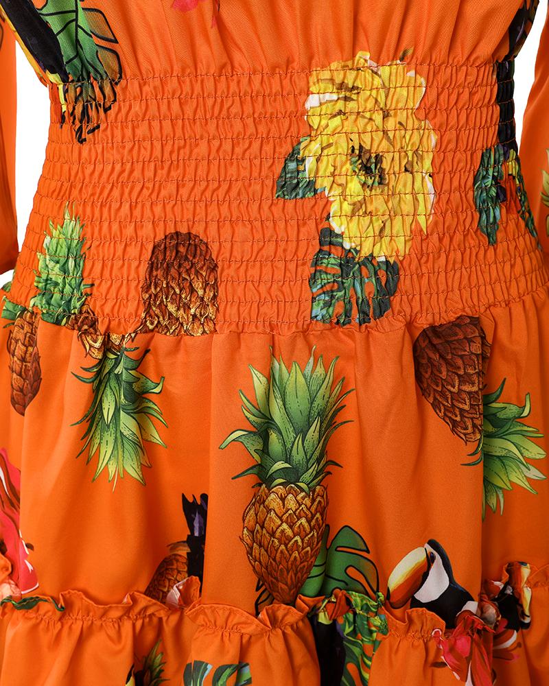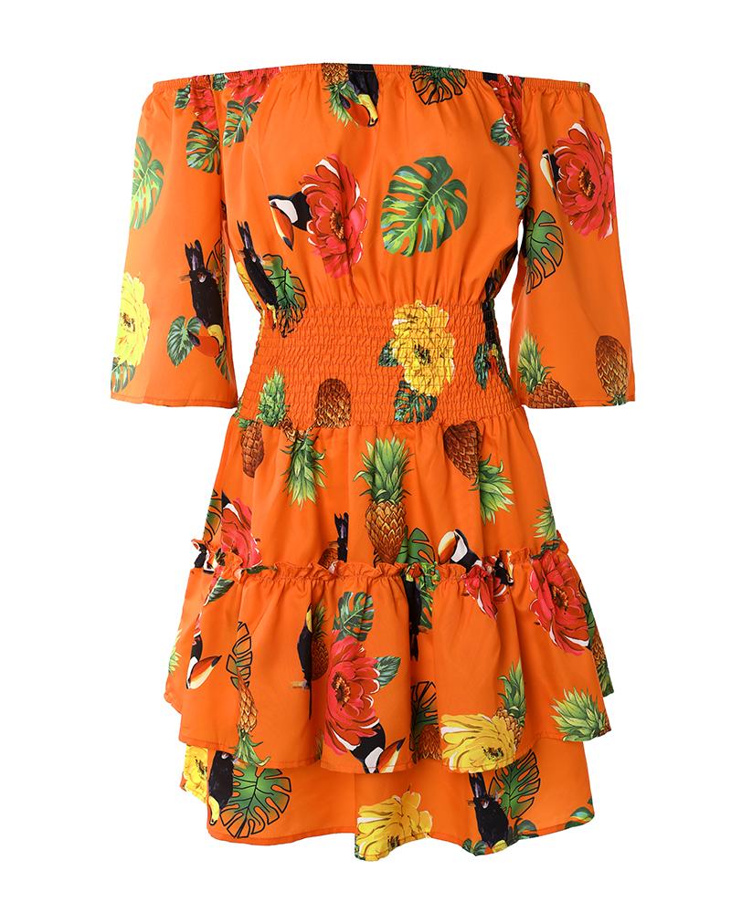 Tropical Print Off Shoulder Casual Dress