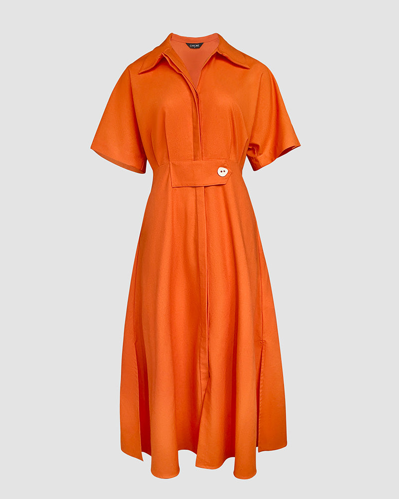 Turn down Collar Half Sleeve Maxi Dress Casual Waisted Slit Shirt Dress
