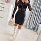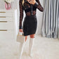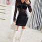 Turn down Collar Long Sleeve Contrast Lace Bodycon Dress Button Front Slim Fit Mini Dress