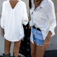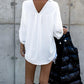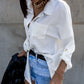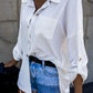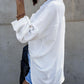 Turn down Collar Long Sleeve Front Button Backless Shirt Metal Chain Decor Blouses with Patch Pocket