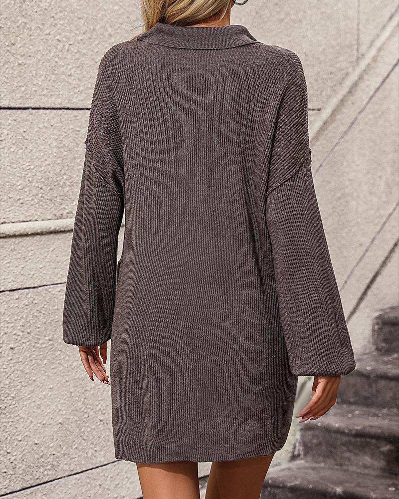Turn down Collar Pocket Design Buttoned Sweater