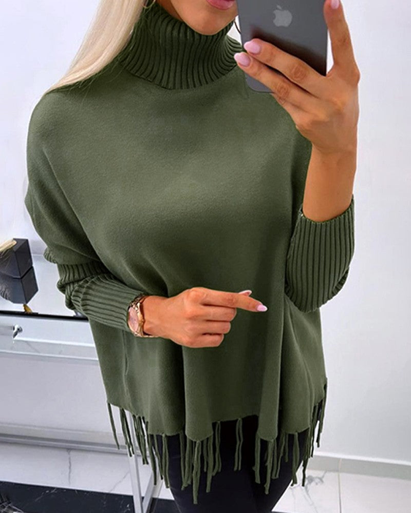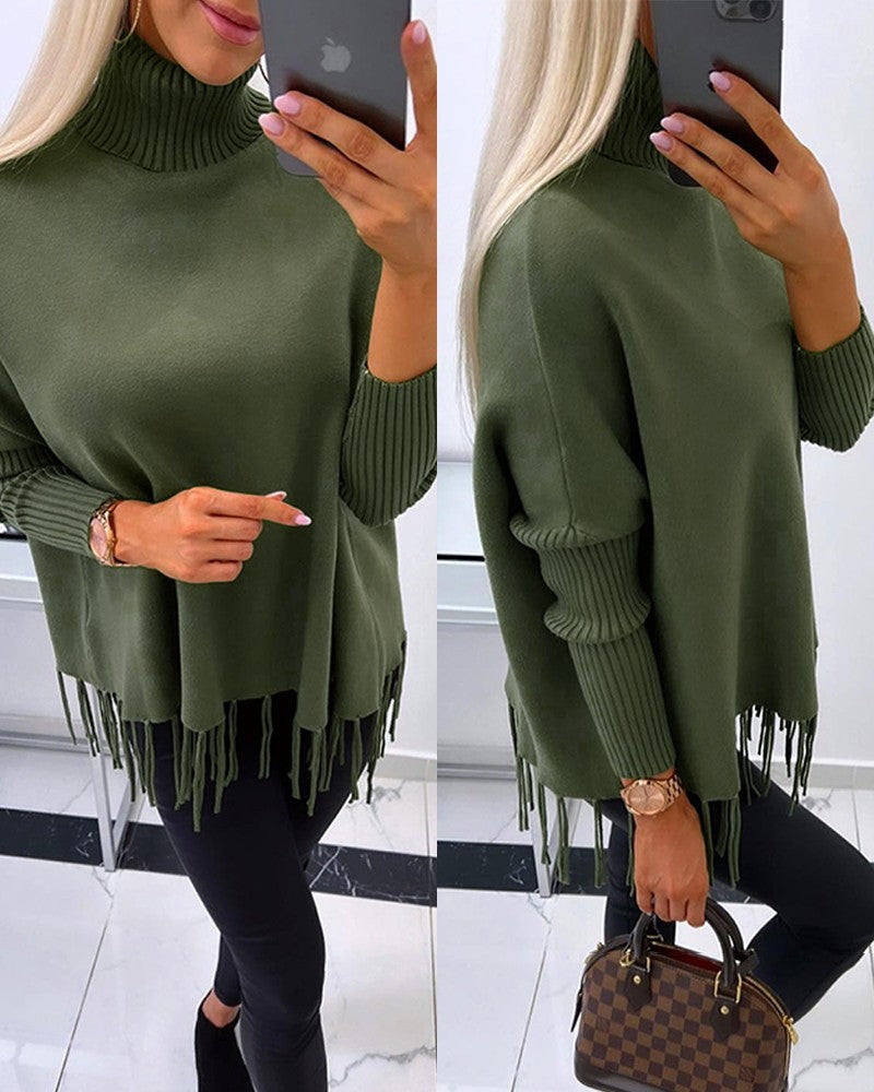 Turtleneck Long Sleeve Tassel Design Knit Sweater