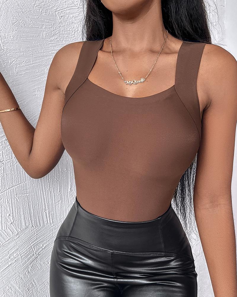 U Neck Built in Bra Tank High Strechy Sleeveless Slim Fit Tops Camisole