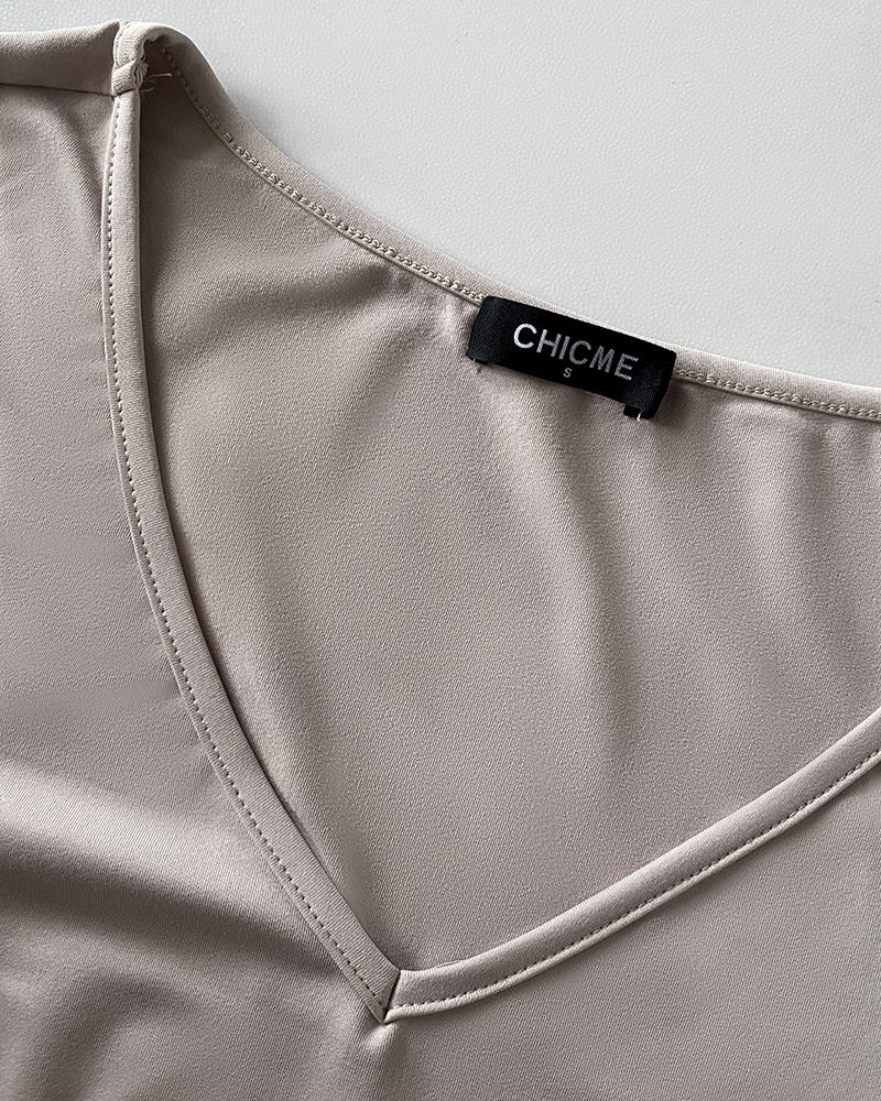 V Neck High Stretch Tapered Leg Casual Jumpsuit With Pockets