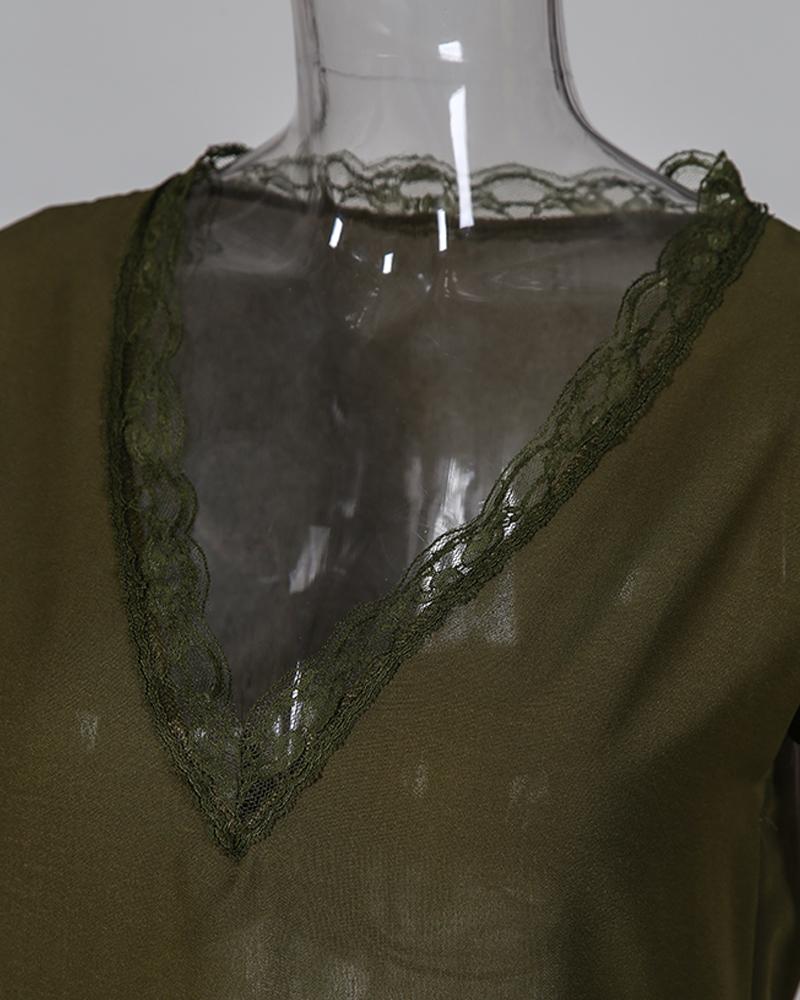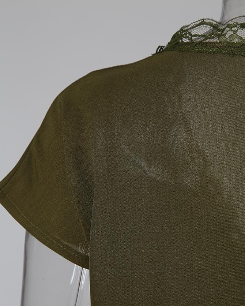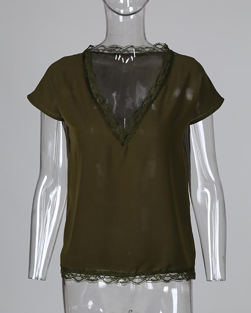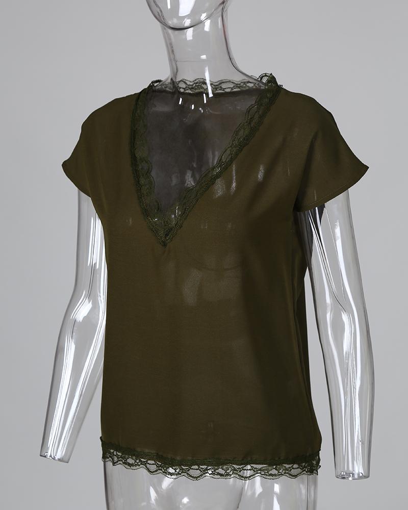 V neck Lace Detail Short Sleeved T shirt