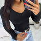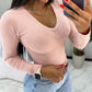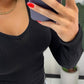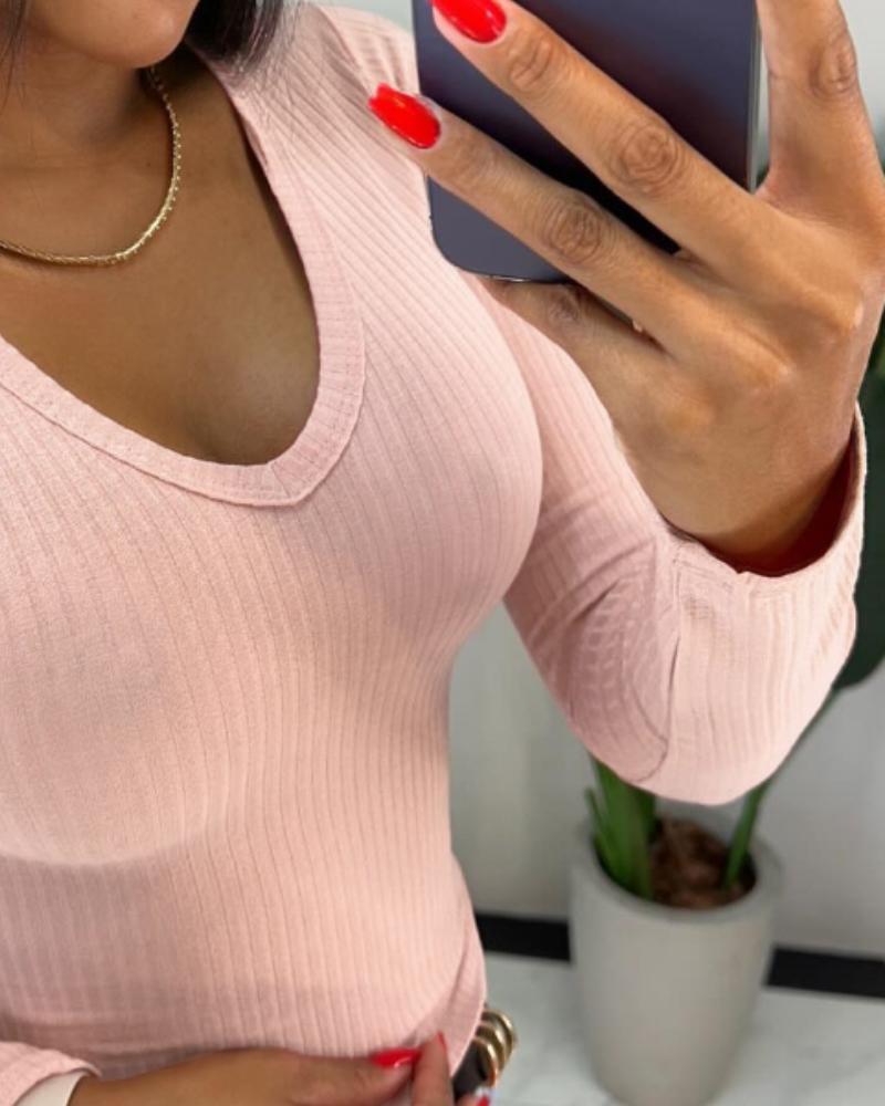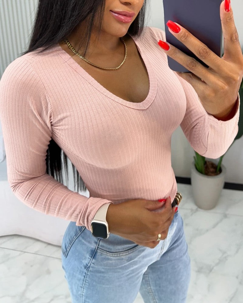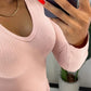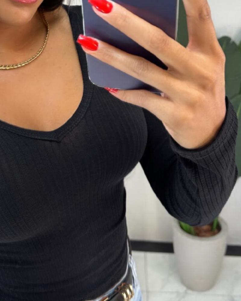 V Neck Long Sleeve Slim Fit Ribbed Top