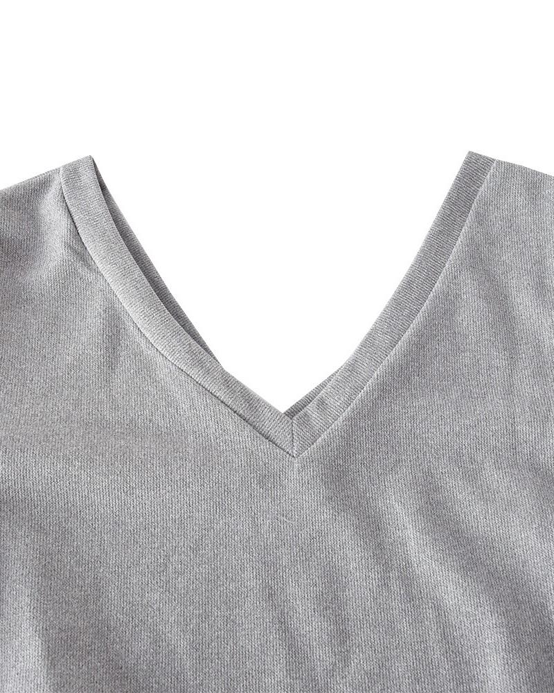 V Neck Long Sleeve Slit Bodycon Dress