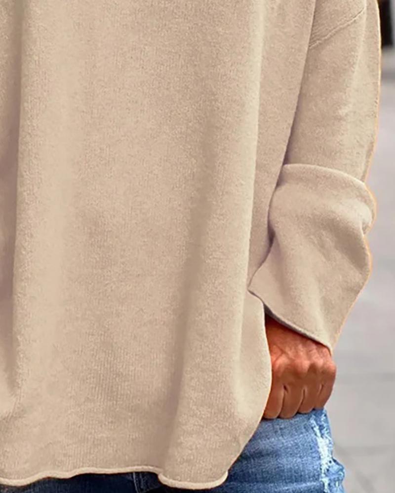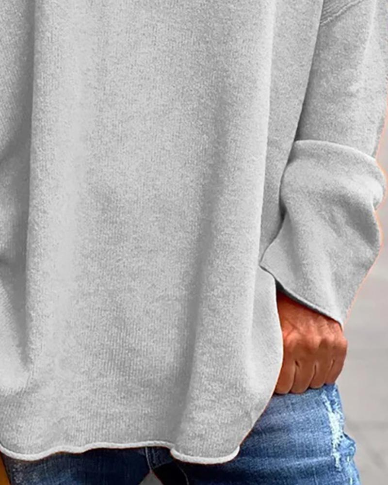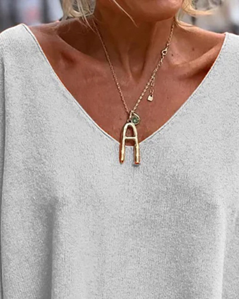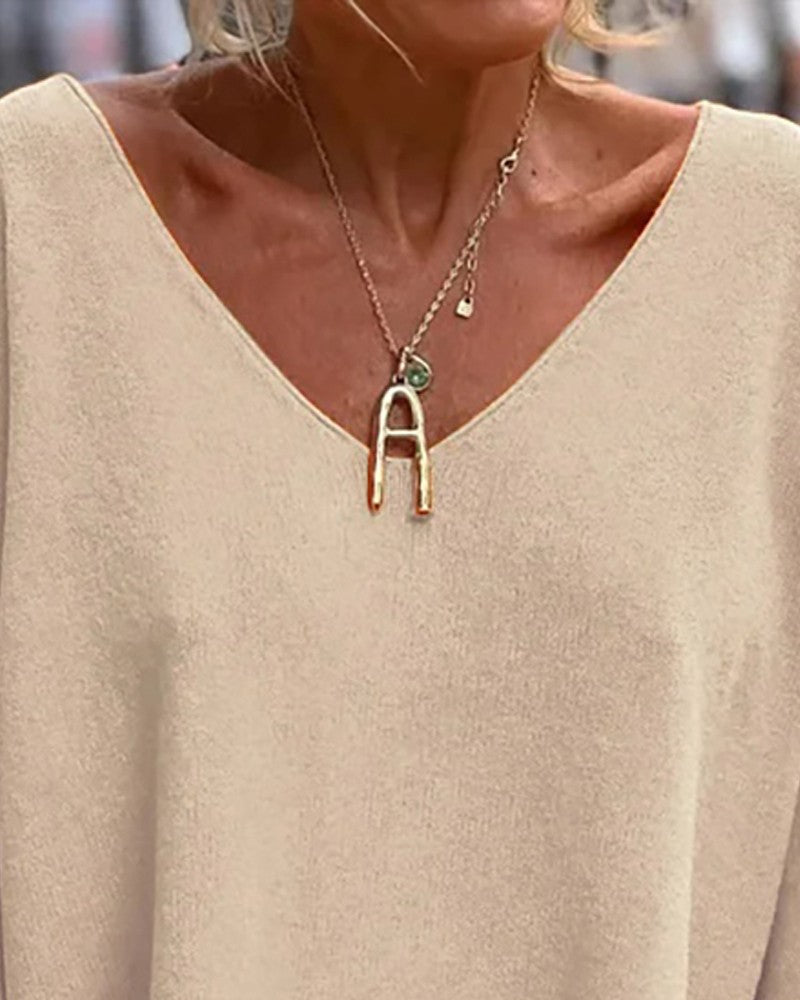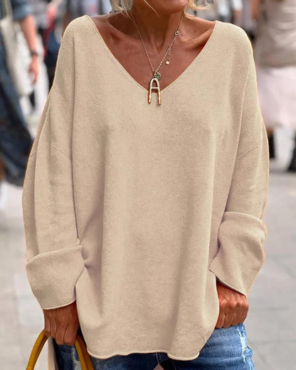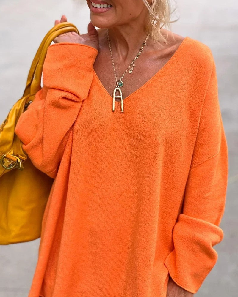 V Neck Long Sleeve Slit Casual Knit Sweater
