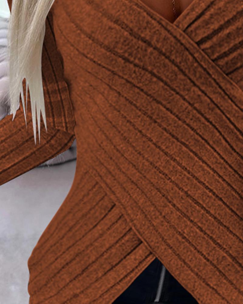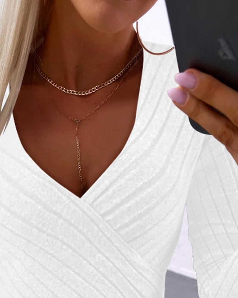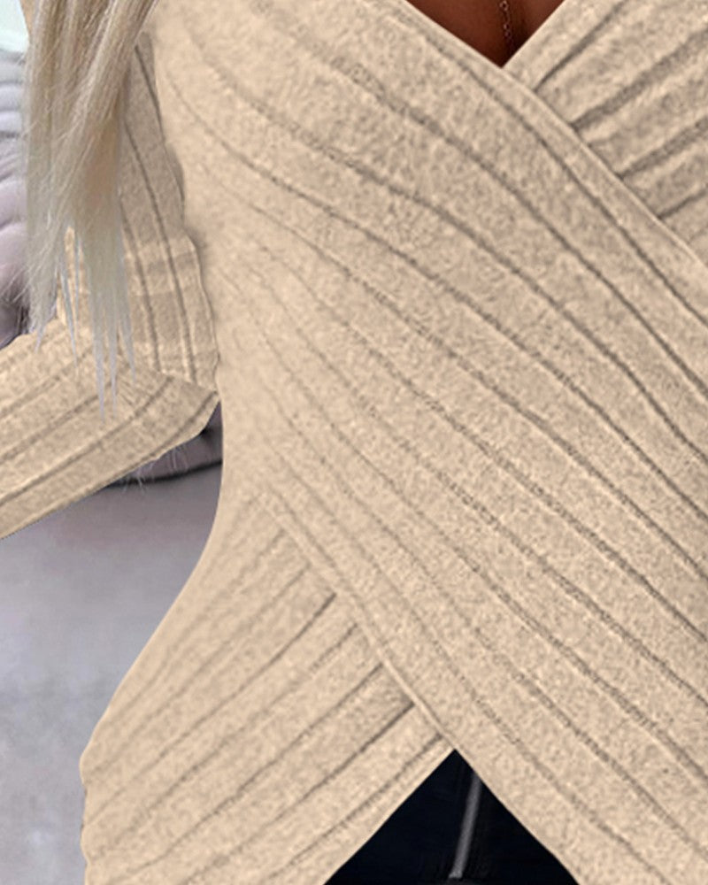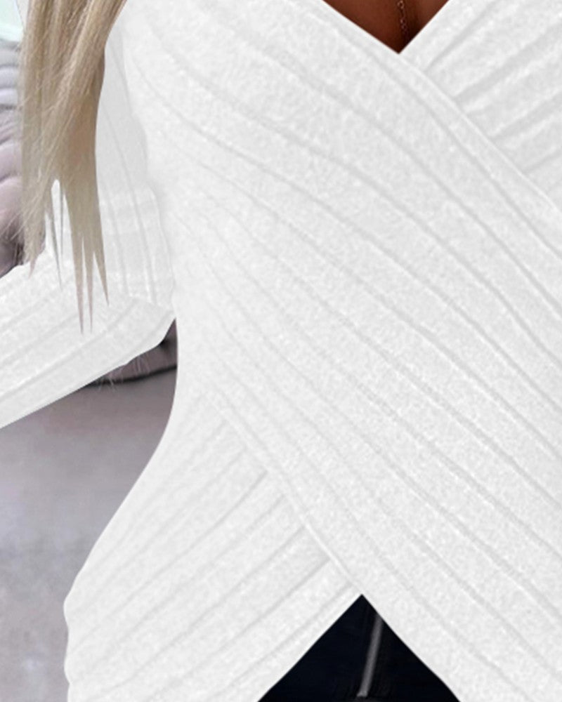V Neck Overlap Asymmetrical Long Sleeve Top