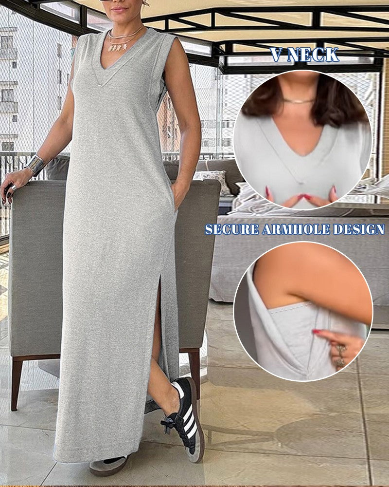 Introducing our V Neck Pocket Design Slit Casual Dress! This dress features a flattering v-neck design and a convenient pocket for your small essentials. The stylish slit adds a touch of elegance to this casual dress. Look and feel amazing in this must-have dress!