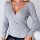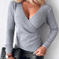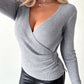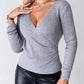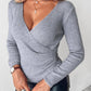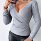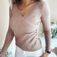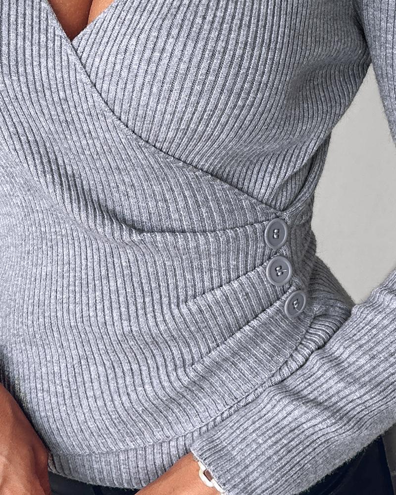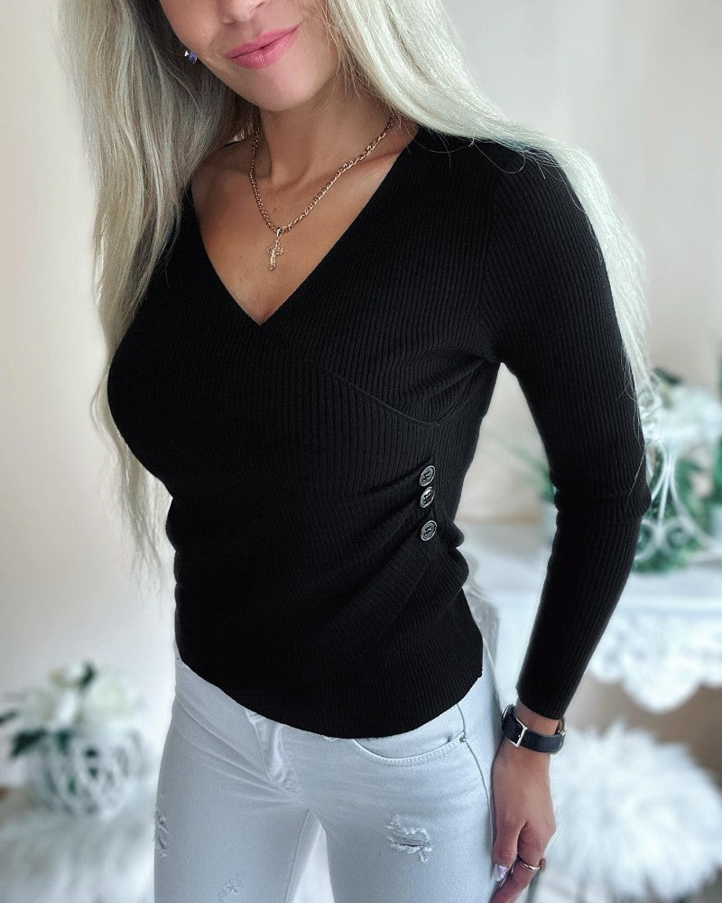 V Neck Ruched Side Button Decor Slim Fit Knit Sweater