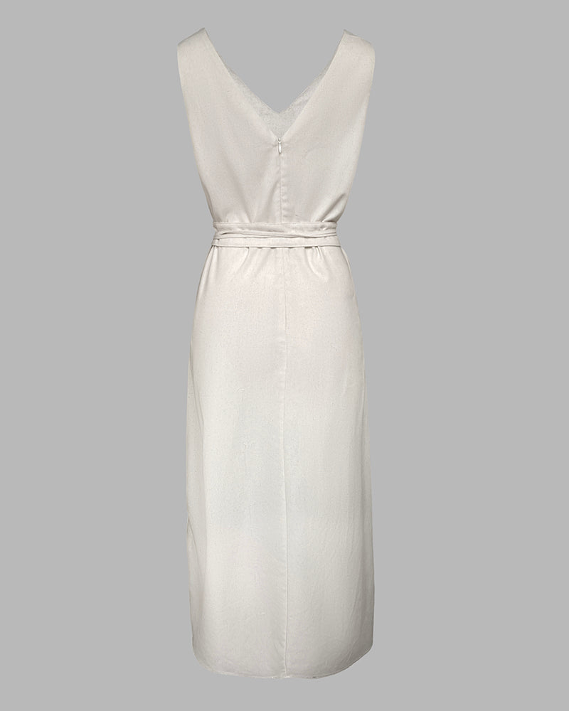 V Neck Sleeveless Tied Detail Casual Dress With Pockets