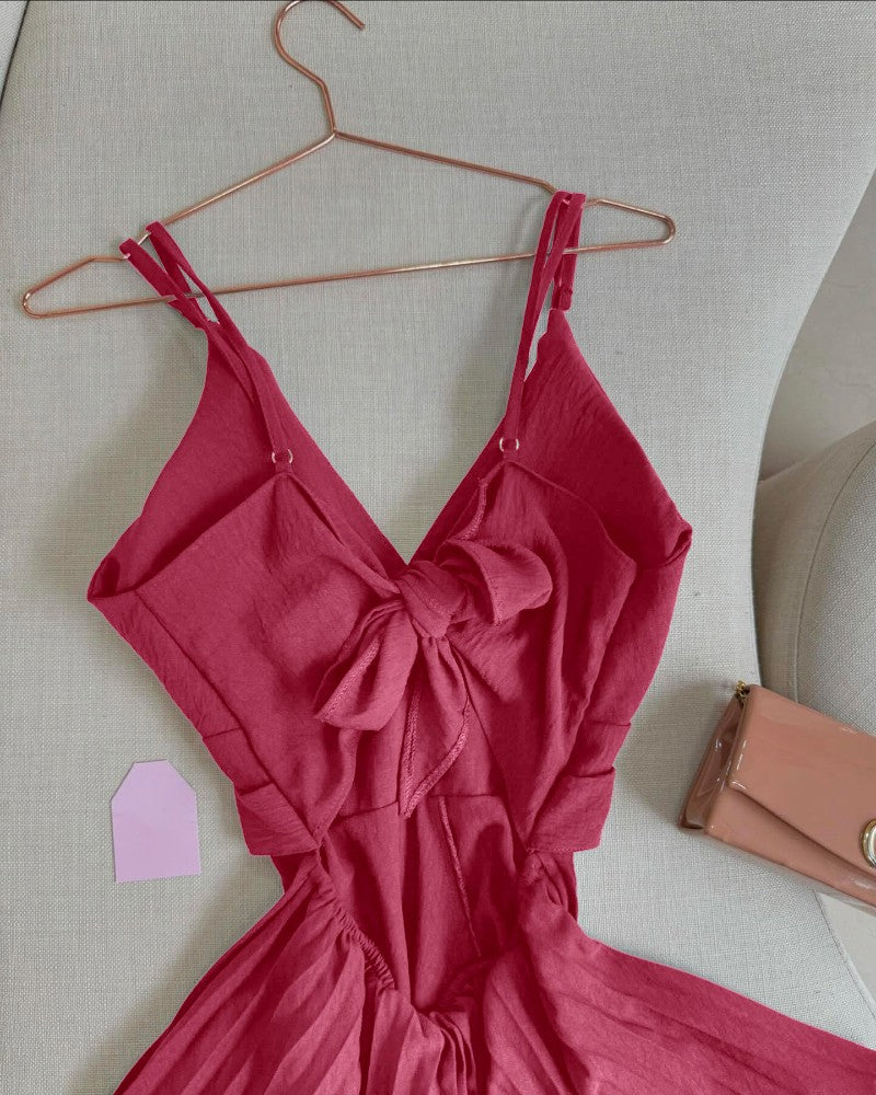 V Neck Spaghetti Strap Tied Detail Romper Casual A Line Layered Jumpsuit