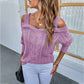 Women's Knit Cold Shoulder Sweaters Crewneck Long Sleeve Slim Fall Tops Sweater K235