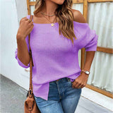 Women's Cold Shoulder Oversized Sweaters Batwing Long Sleeve Square Neck Chunky Knit Fall Tunic Sweater Tops K237