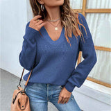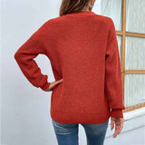 Women's Casual Chocker Neck Halter Sweater Solid Long Sleeve Loose Fit Hollow Out V Neck Pullover Knitted Tops K247