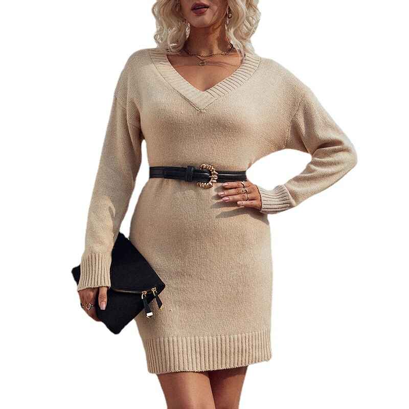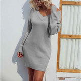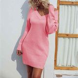 Womens V Neck Long Sleeve Bodycon Mini Sweater Dress Fall Off Shoulder Ribbed Knit Wrap Short Dresses K275