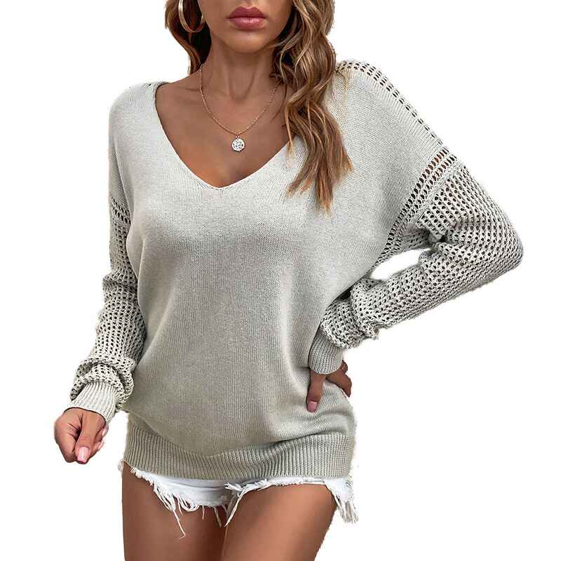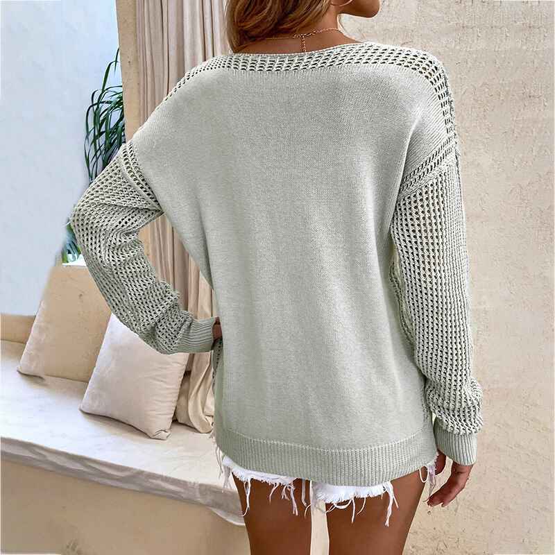 Women Crochet Hollow Out Crewneck Long Sleeve Knit Sweaters Pullover Jumper Tops K226