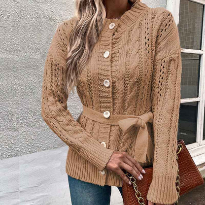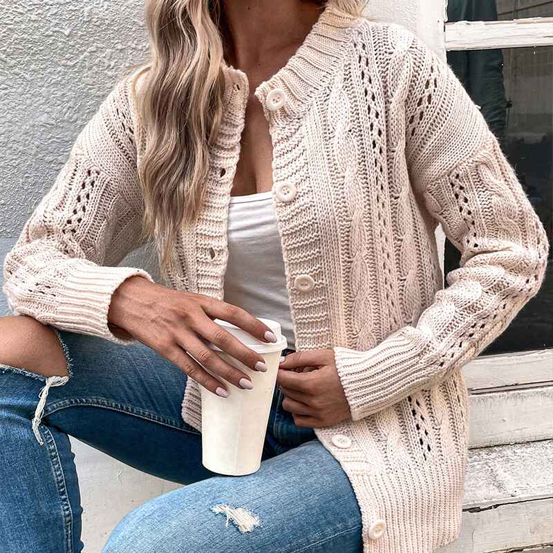 Women's Cable Knit Sweater Coat Long Sleeve Button Down Cardigan Outwear K398