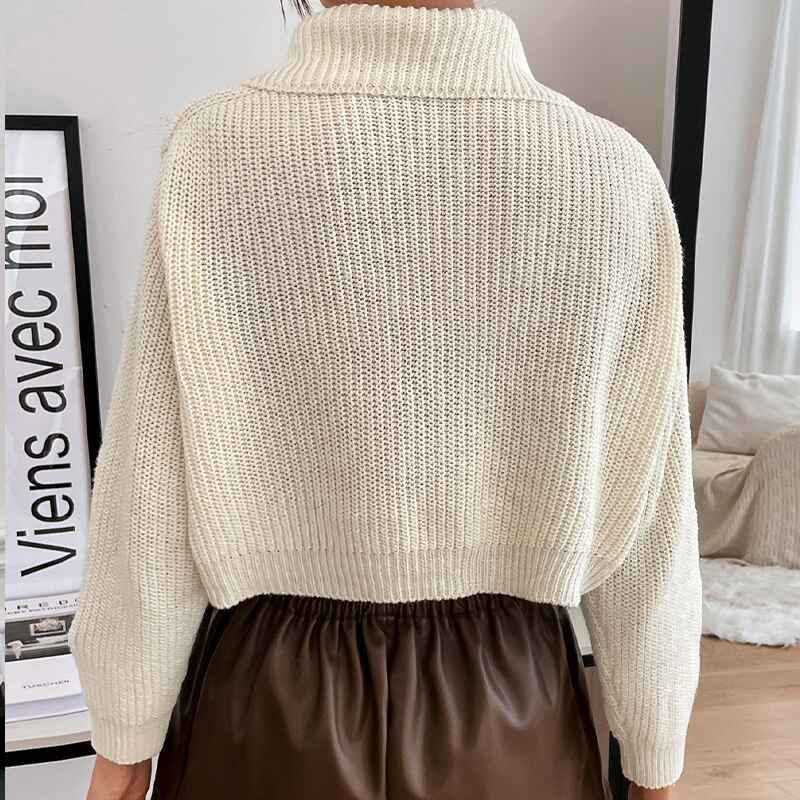 Women's Cropped Sweater V-Neck Long Sleeve Crop Sweater Pullover Jumper Knit Top K401