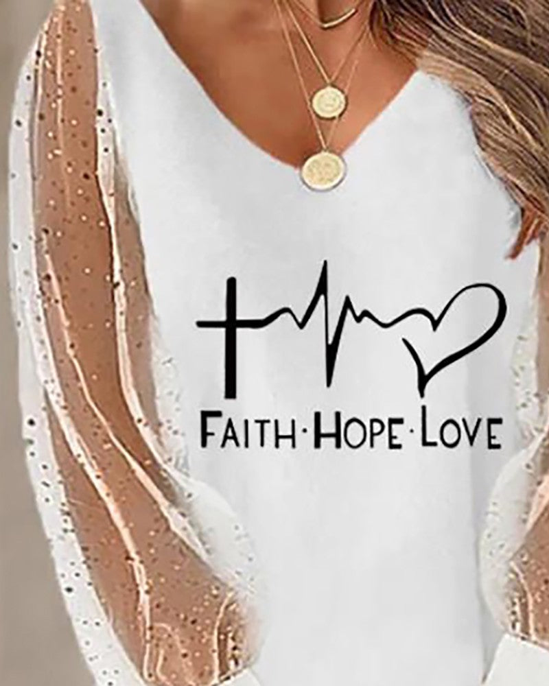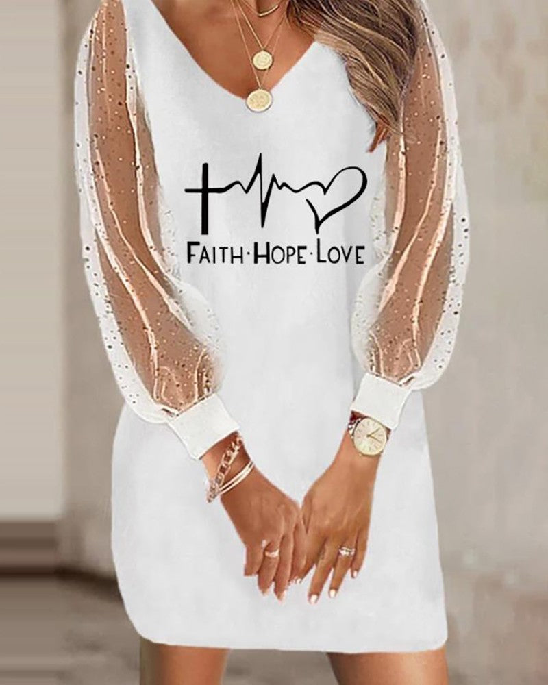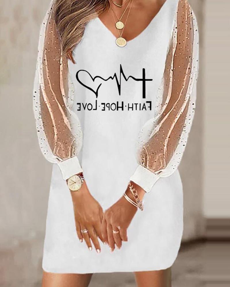 Valentine's Day Heart Print Lantern Sleeve Sheer Mesh Casual Dress
