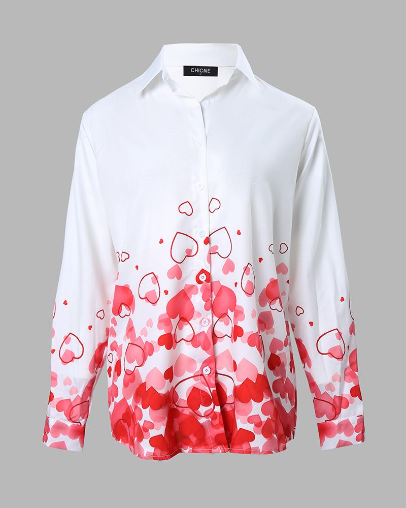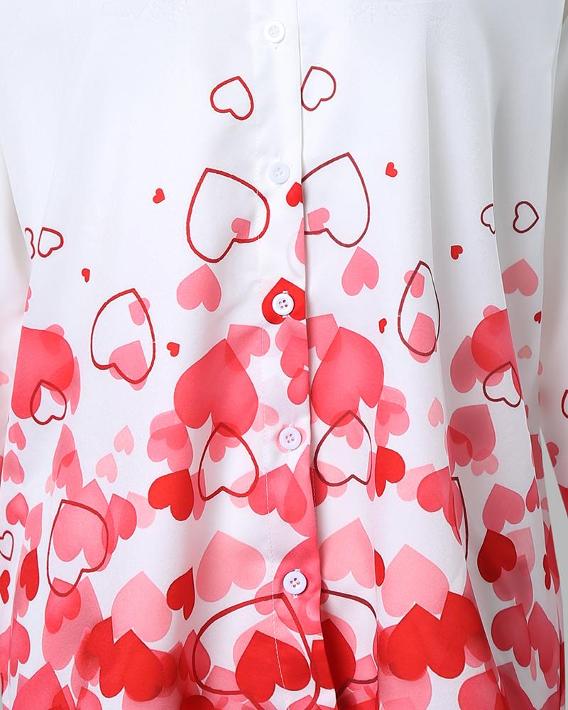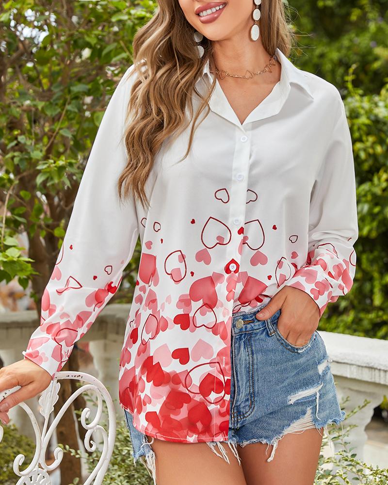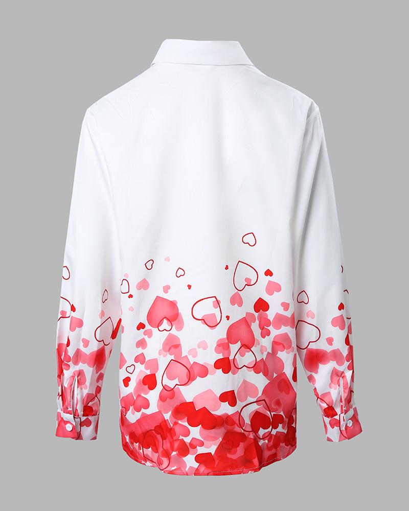 Valentine's Day Heart Print Long Sleeve Button Down Shirt